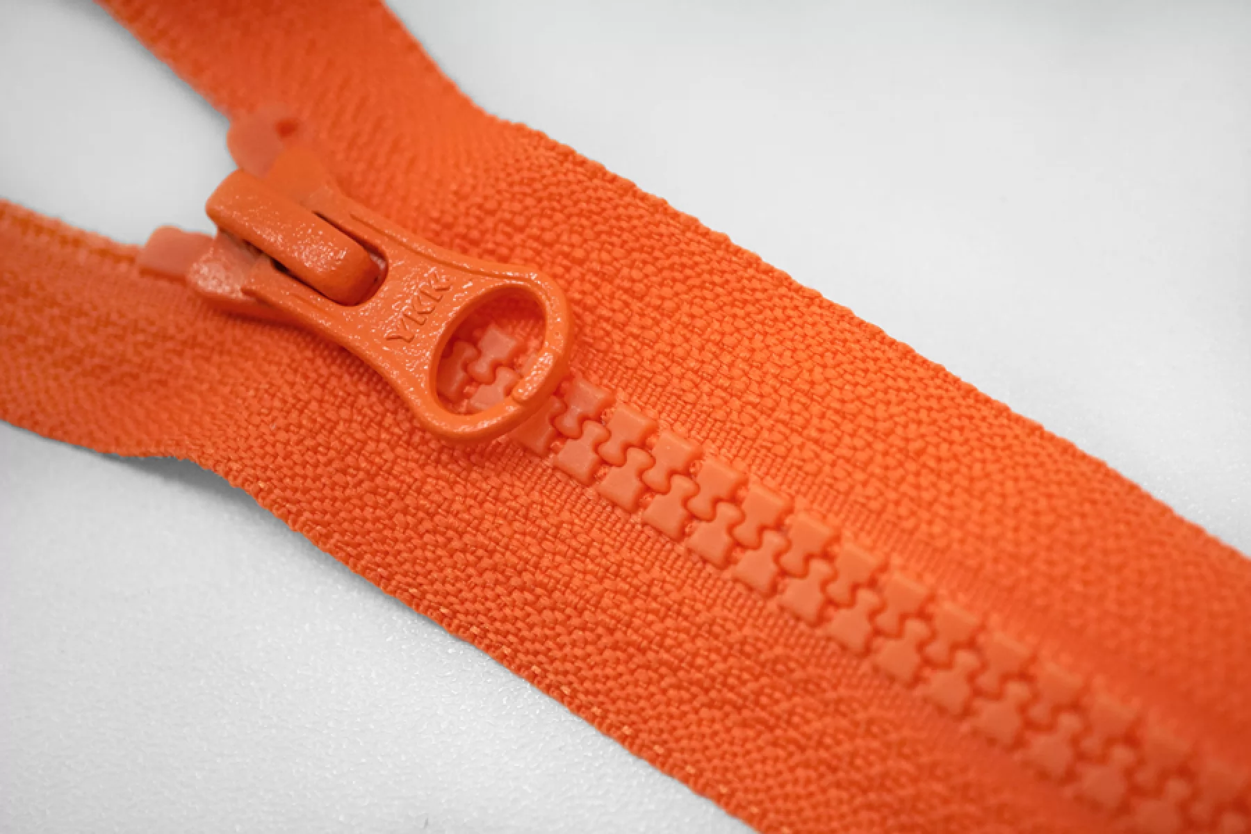 Молния тракторная пластиковая от "YKK" разъёмная, однозамковая, оранжевого цвета. Длина 55 см.