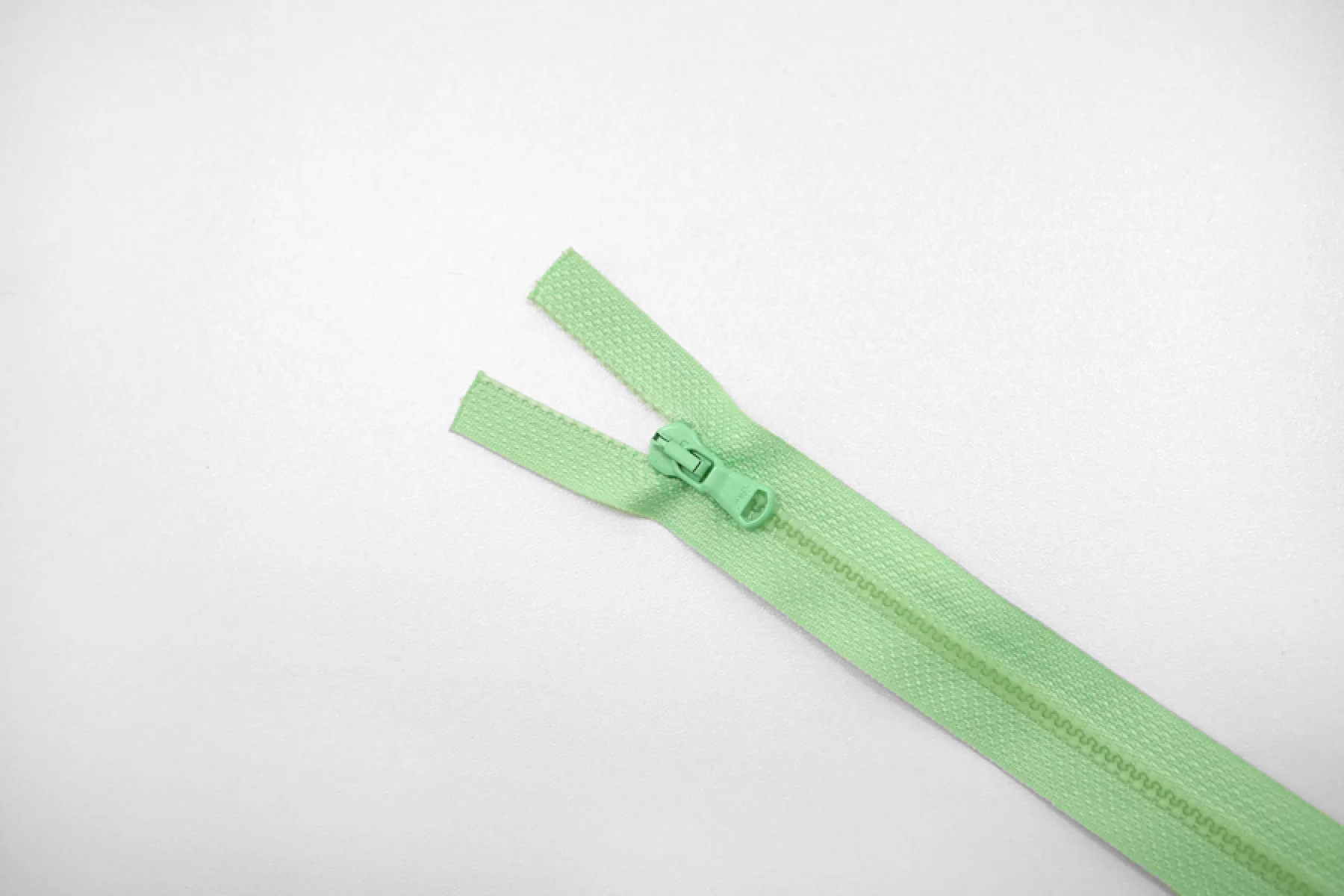 Молния тракторная пластиковая от "Lampo" разъёмная, однозамковая, пастельного салатового цвета. Длина 65 см.