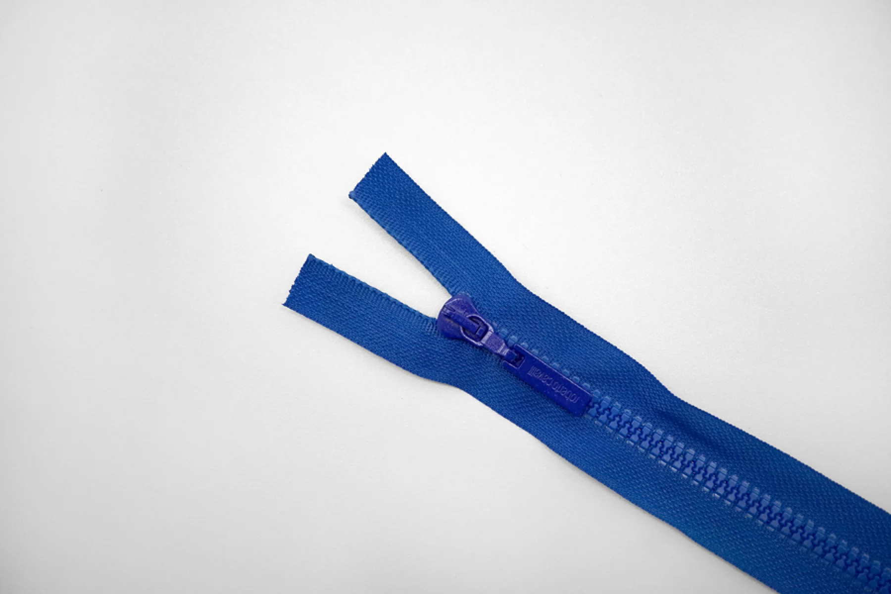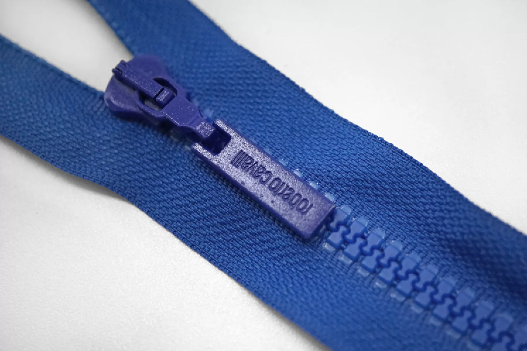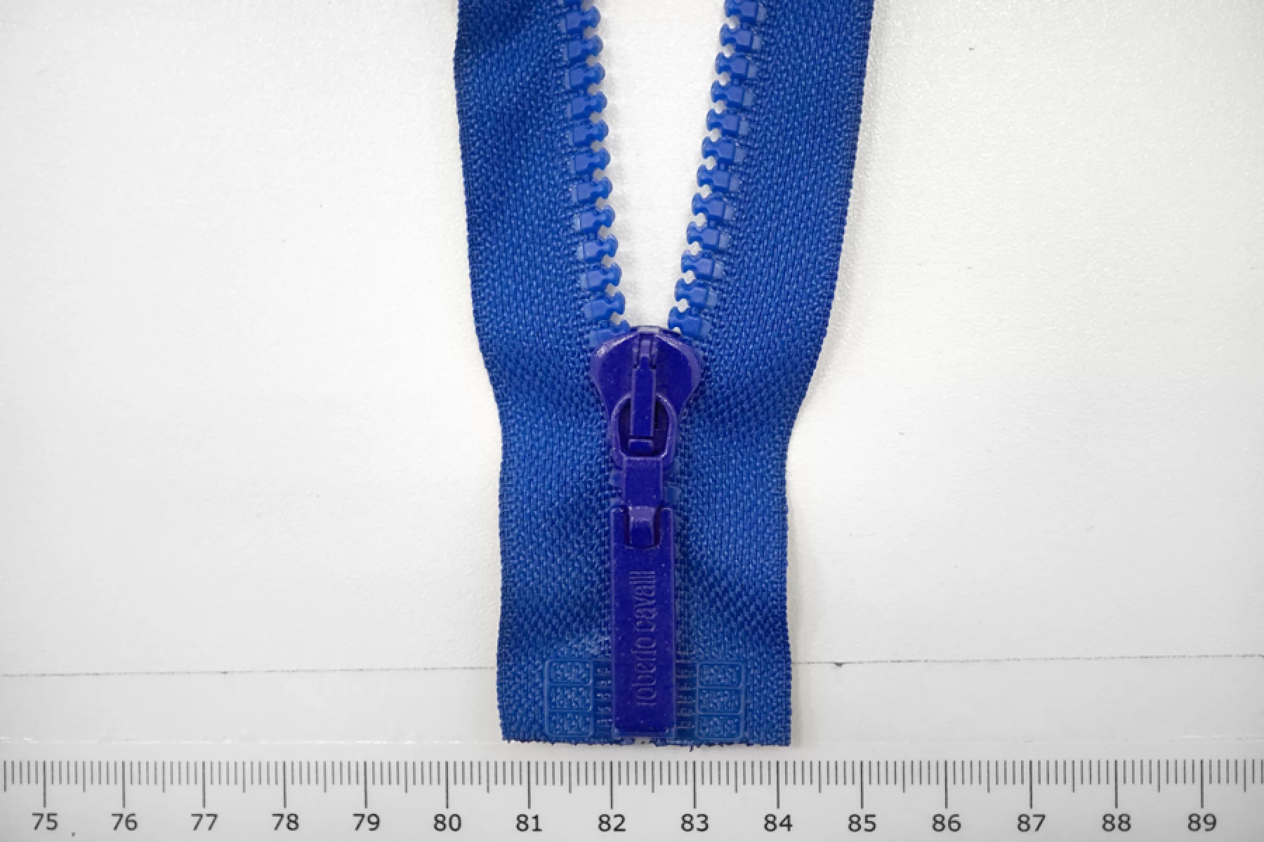 Молния тракторная пластиковая от "Lampo" & "Roberto Cavalli" разъёмная, ярко-синяя, слайдер и пуллер сине-фиолетовые. Длина 60 см.