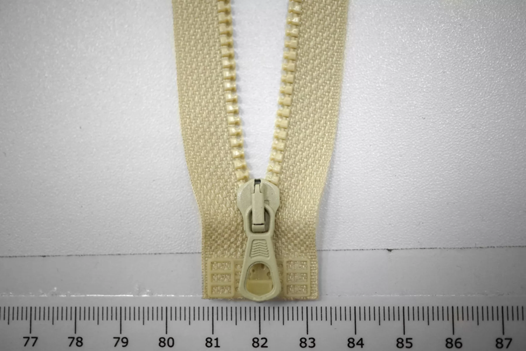 Молния тракторная пластиковая от "Lampo" разъёмная, однозамковая, светлого бежево-фисташкового цвета. Длина 41 см.