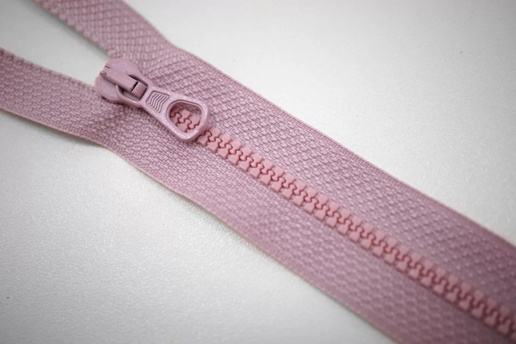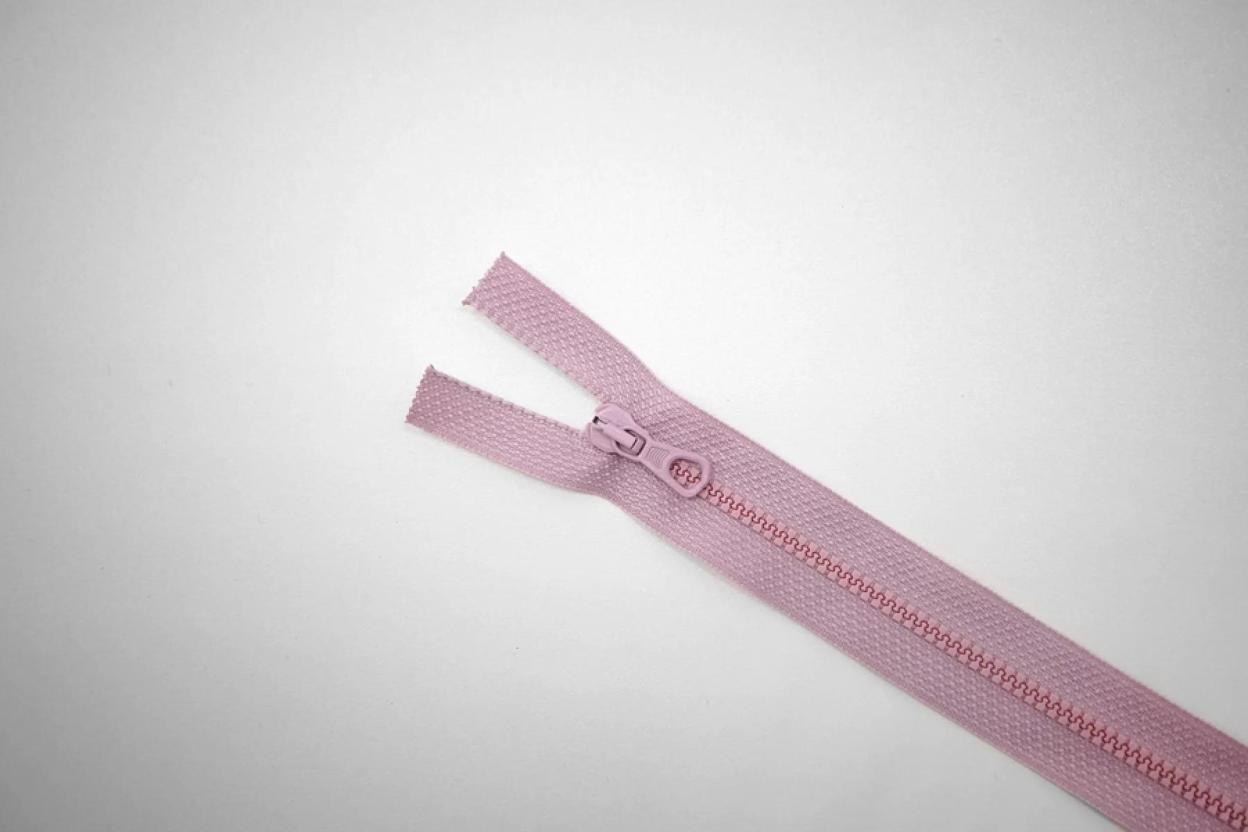 Молния тракторная пластиковая от "Lampo" разъёмная, однозамковая, светло-лилового цвета, зубцы более розовые. Длина 60 см.