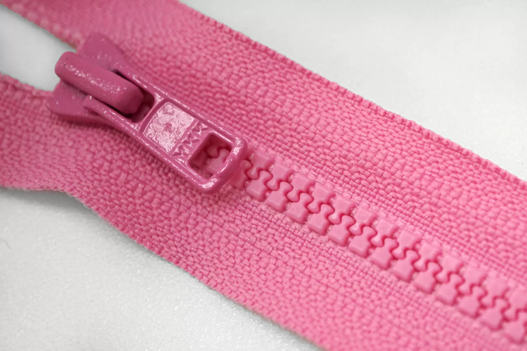 Молния тракторная пластиковая от "YKK" разъёмная, однозамковая, розового цвета. Длина 42 см.