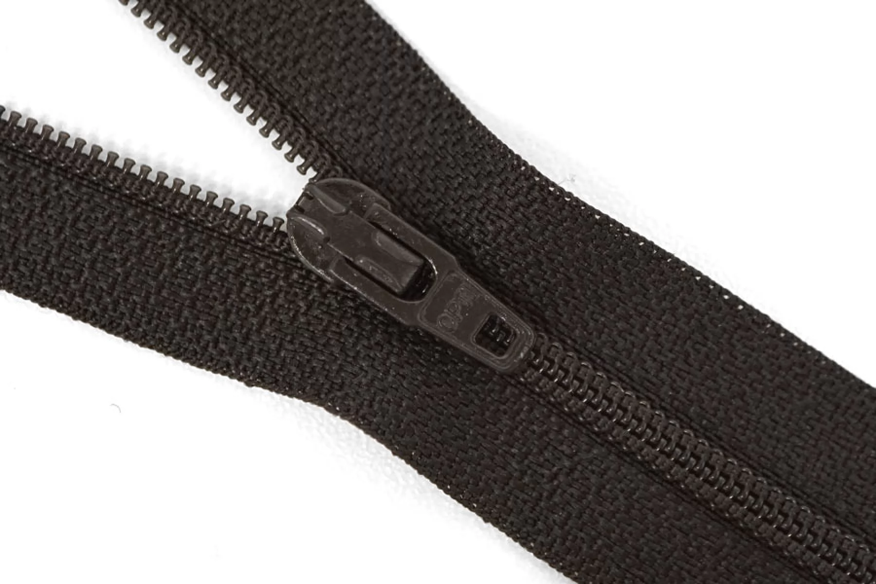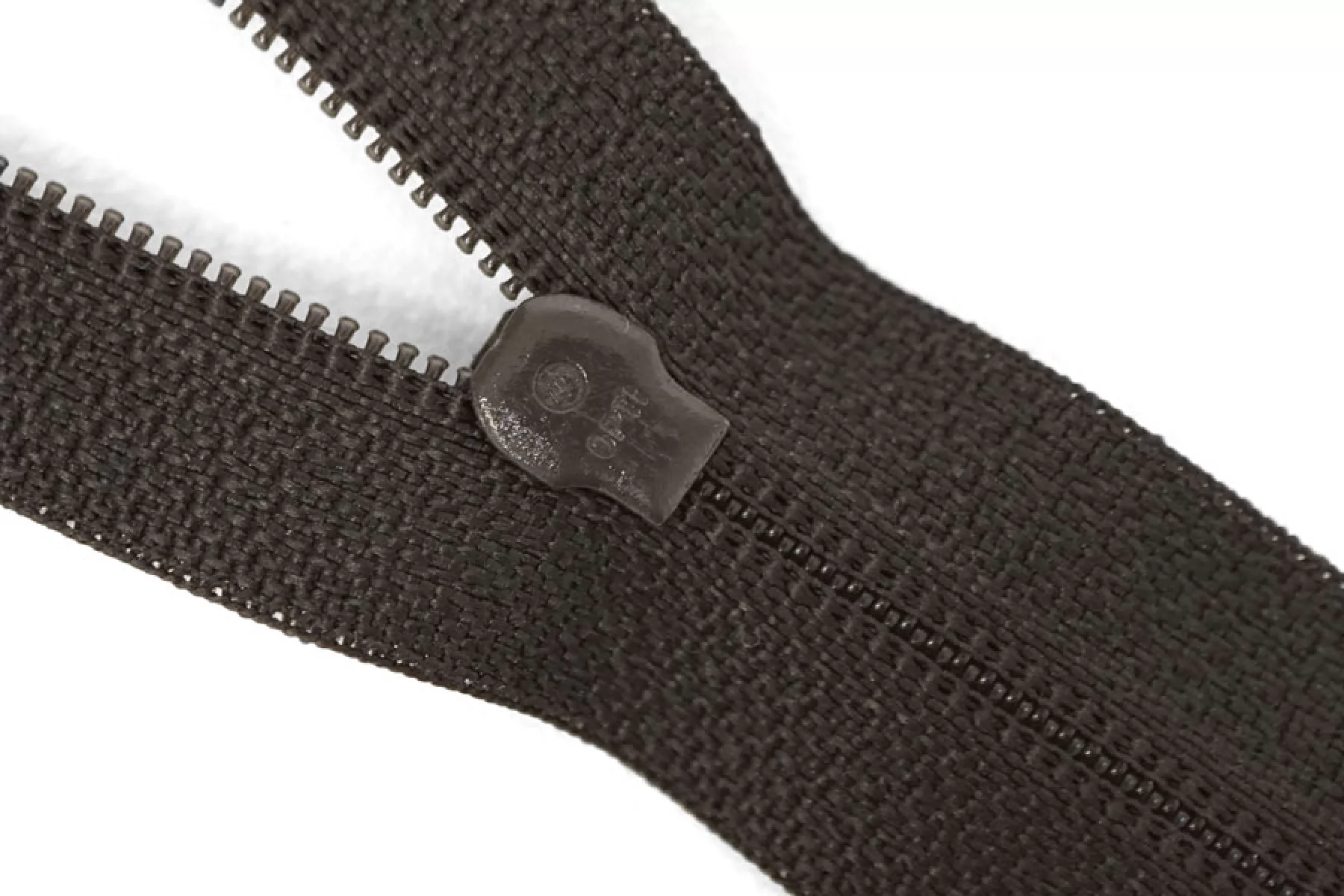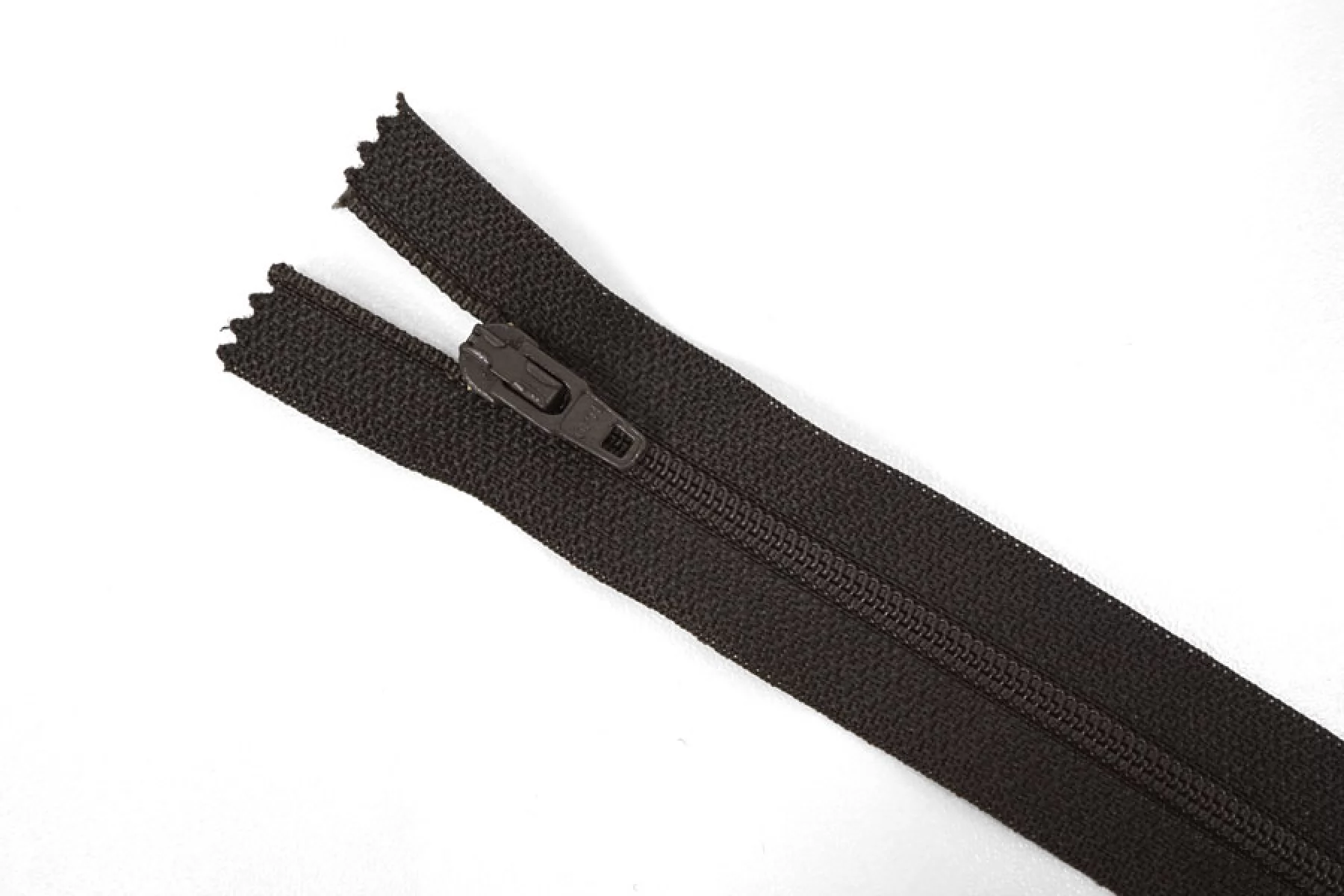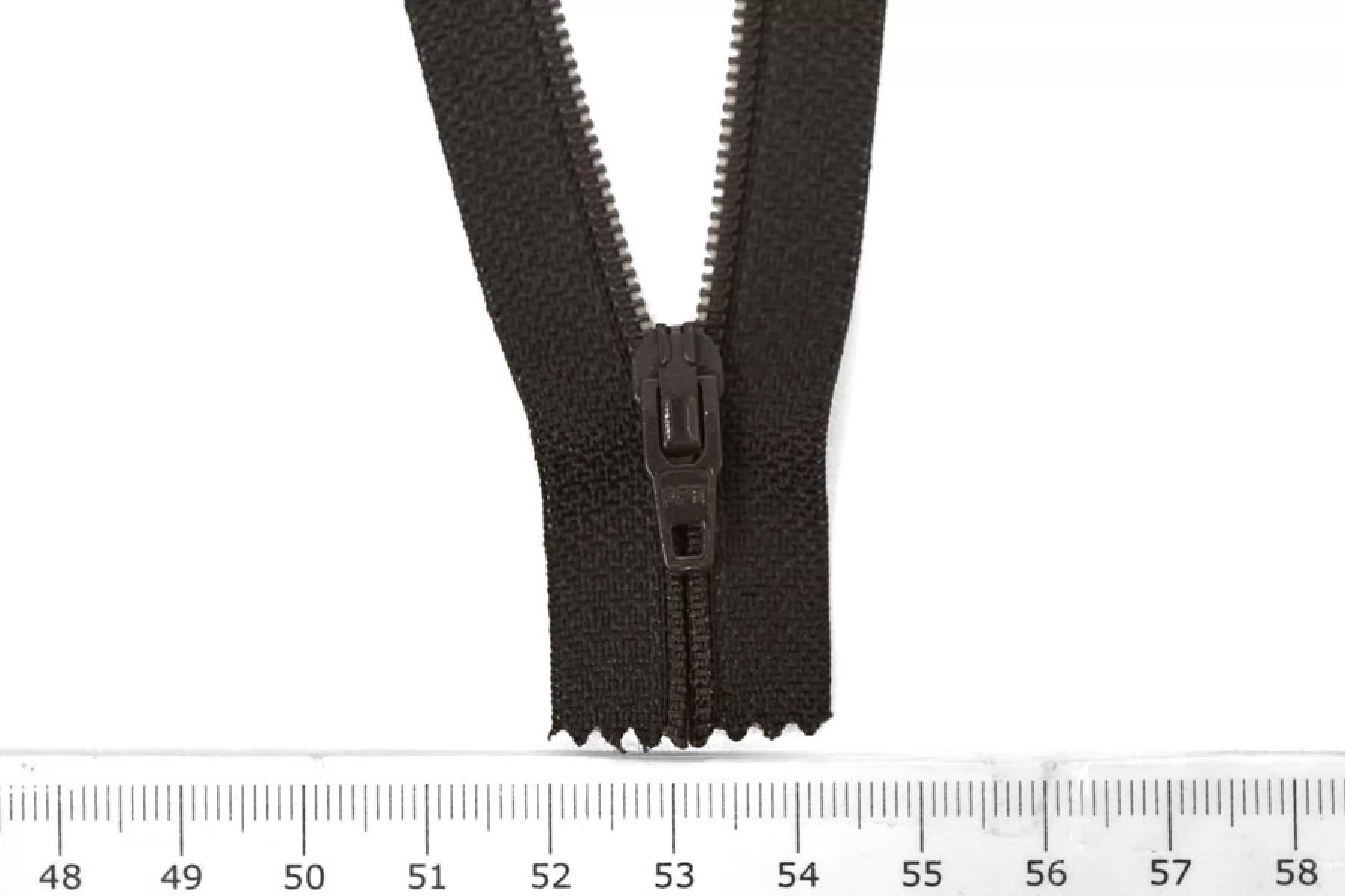 Молния брючная неразъемная , тёмно-коричневого цвета , Зубцы пластиковые, пуллер и слайдер -металлический. Длина 16 см. Ширина 2,2 м. Ширина зубцов 4 мм.