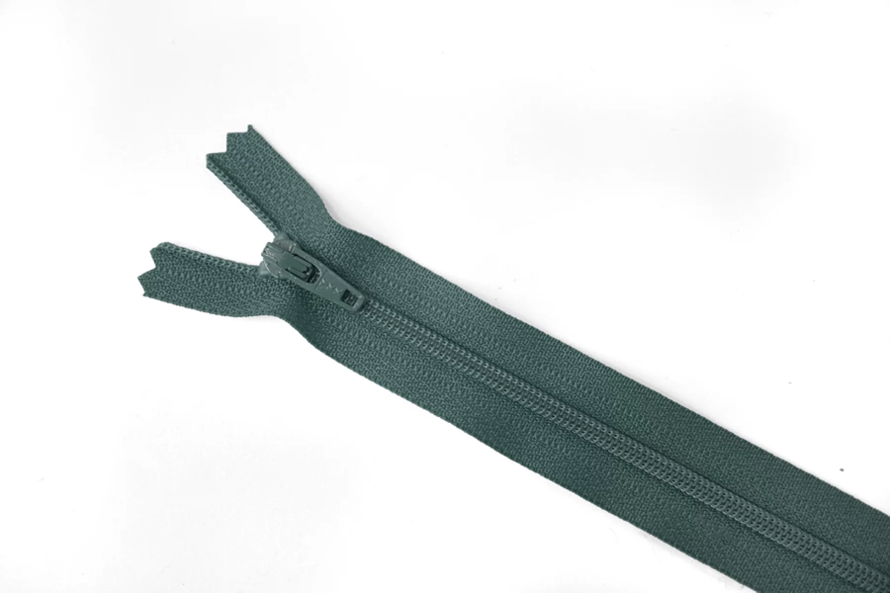 Молния YKK неразъемная, в темном сине-зеленом оттенке, цвет зубцов и пуллера - сине-зеленый. Зубцы пластиковые, пуллер -металлический. Длина 19,5 см. Ширина 2,2 мм. Ширина зубцов 4 мм.