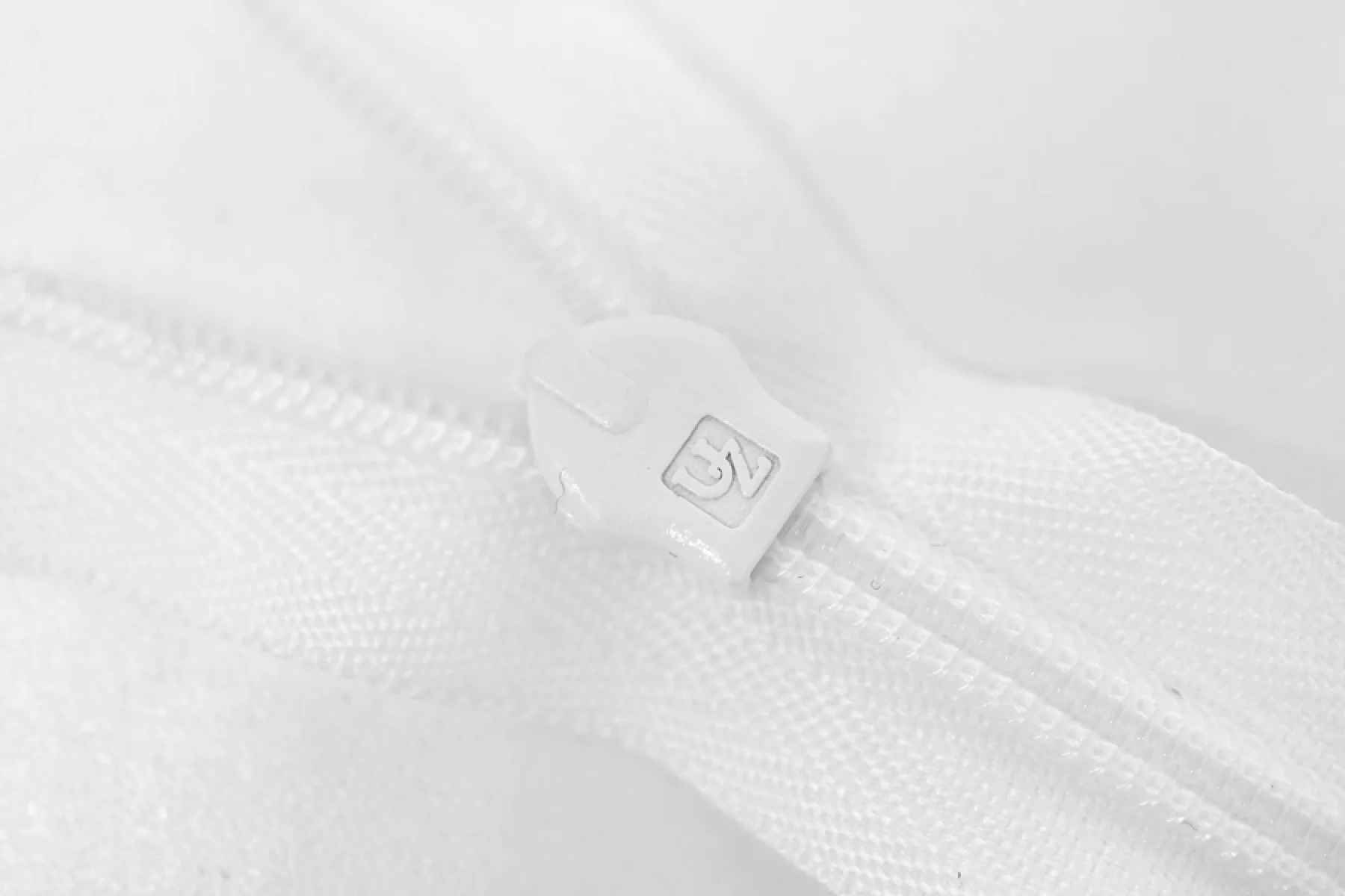 Потайная молния белого цвета от бренда UZ, длина 25,5 см. Неразъемная. Зубцы пластиковые, слайдер и пуллер металл белого цвета. Ширина молнии 2,4 см. Ширина зубцов 5 мм.