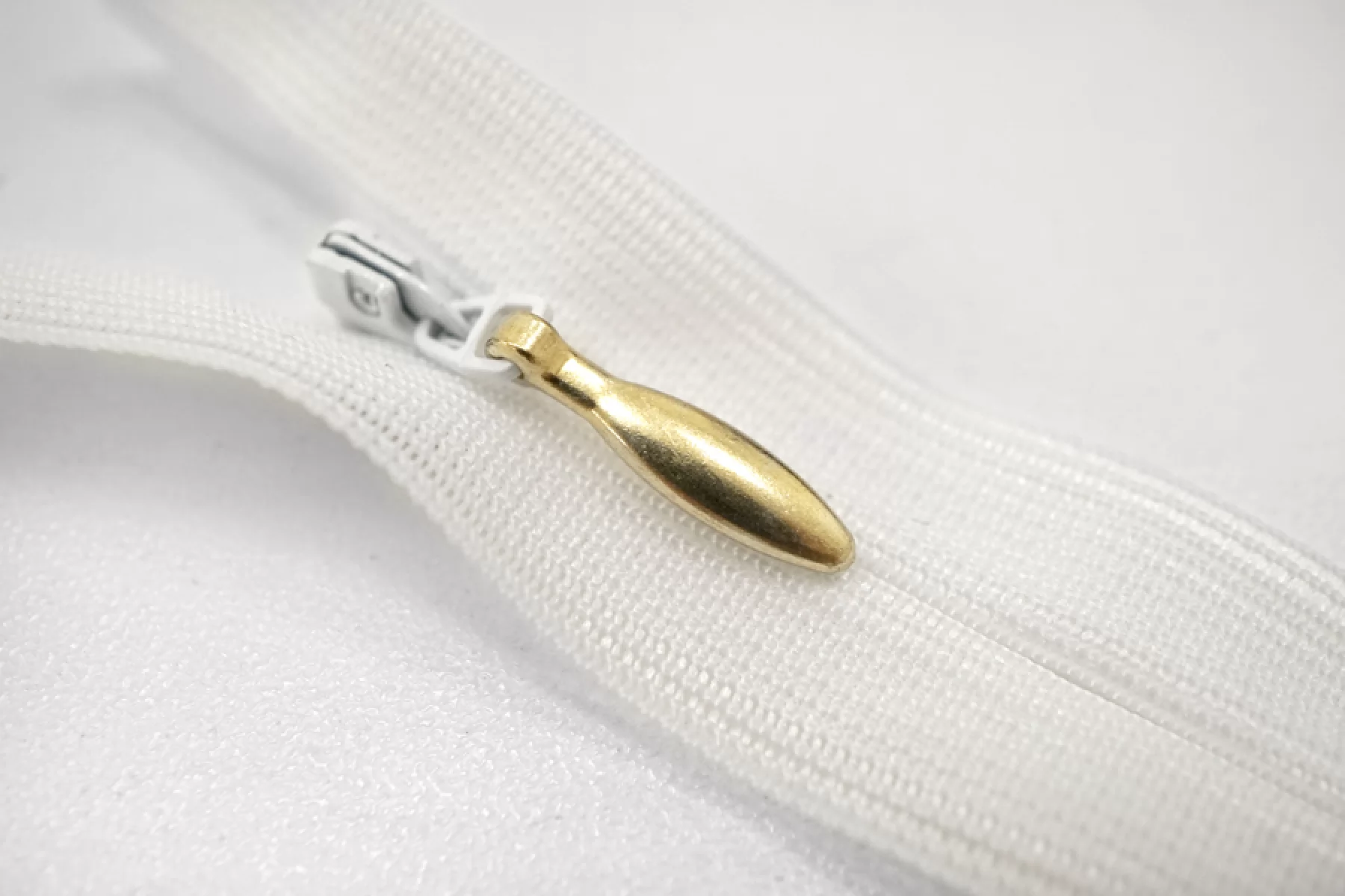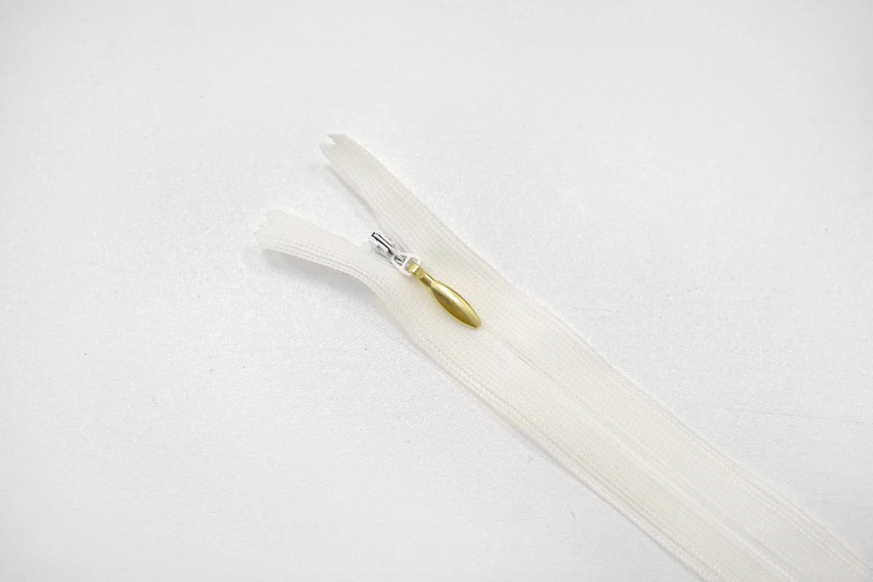 Потайная молния белого цвета с золотистым пулером от YKK, длина 16 см.