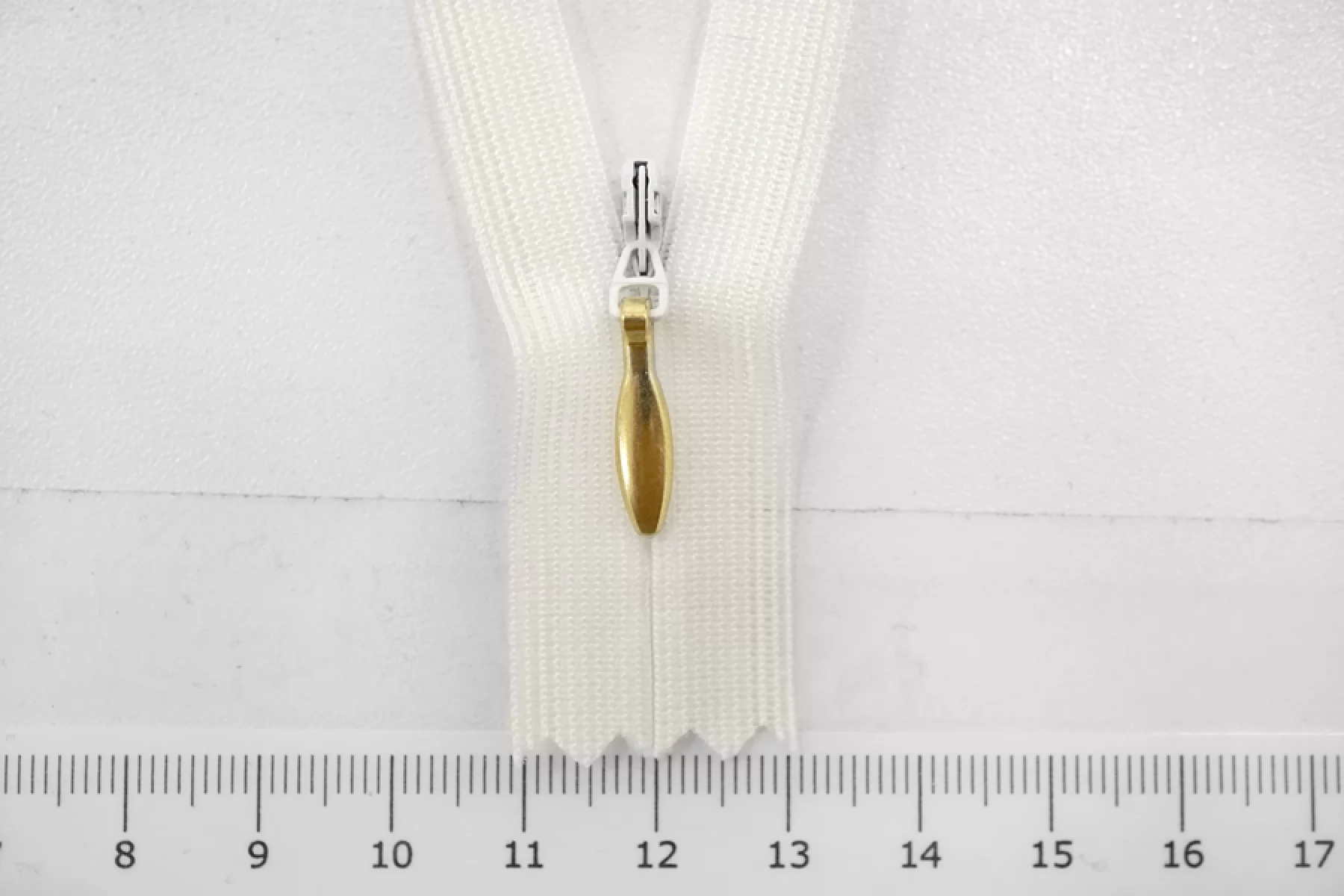 Молния потайная белая с золотистым пулером 16 см YKK H12 17112132