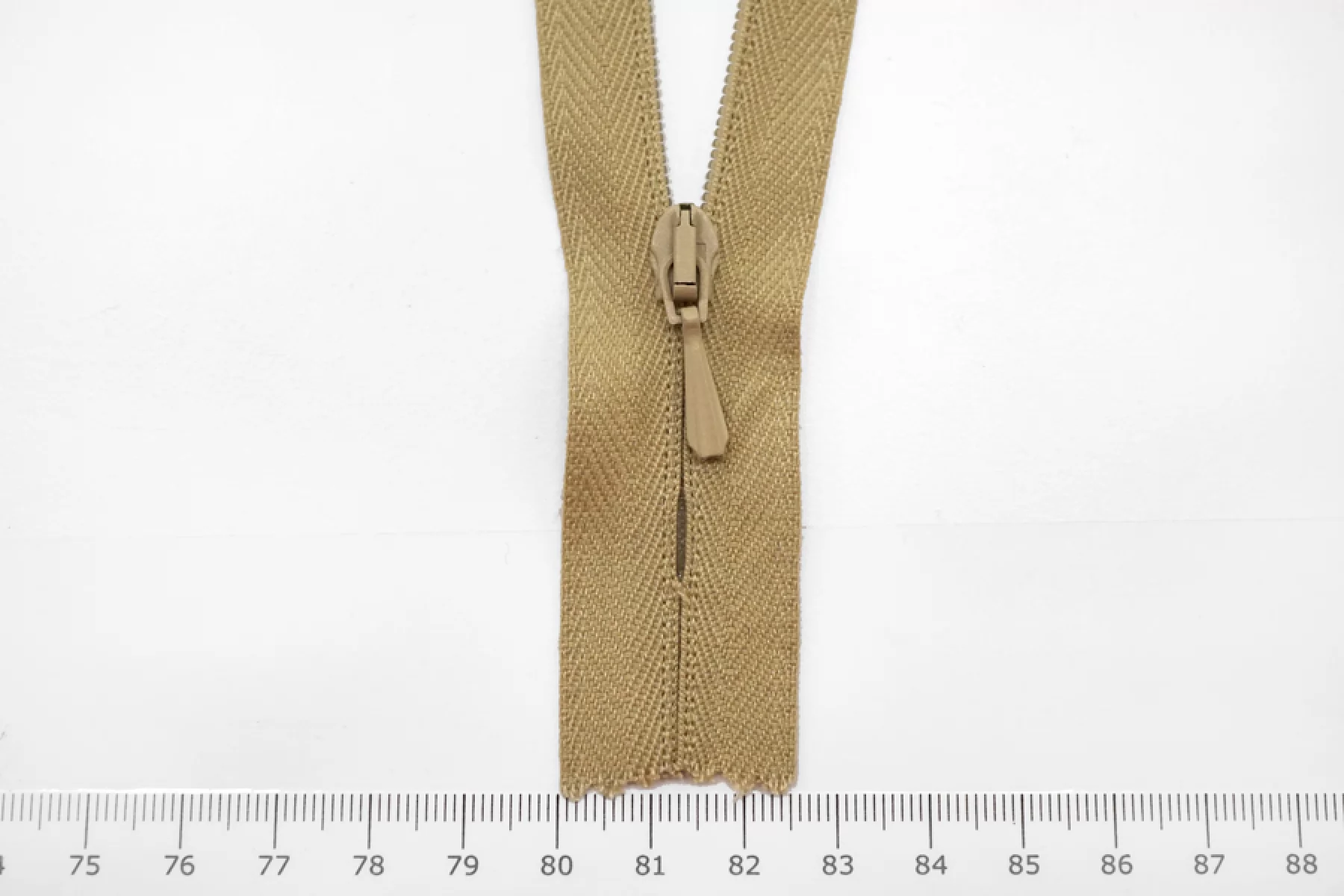 Потайная молния бежевого цвета от YKK, длина 12 см.