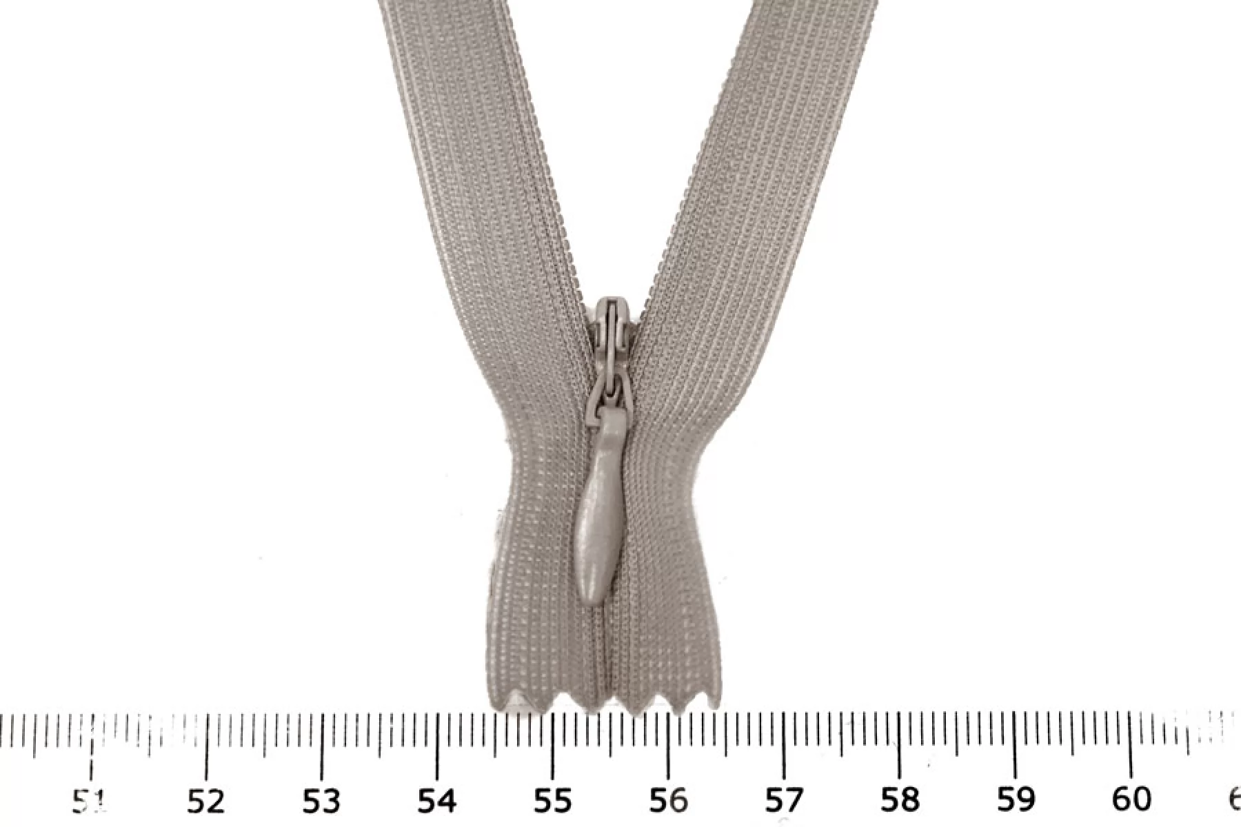 Молния потайная цвета какао , длина 16 см. Неразъемная. Зубцы пластиковые, слайдер и пуллер - металл в цвет молнии. Ширина молнии 2,2 см. Ширина зубцов 4 мм.