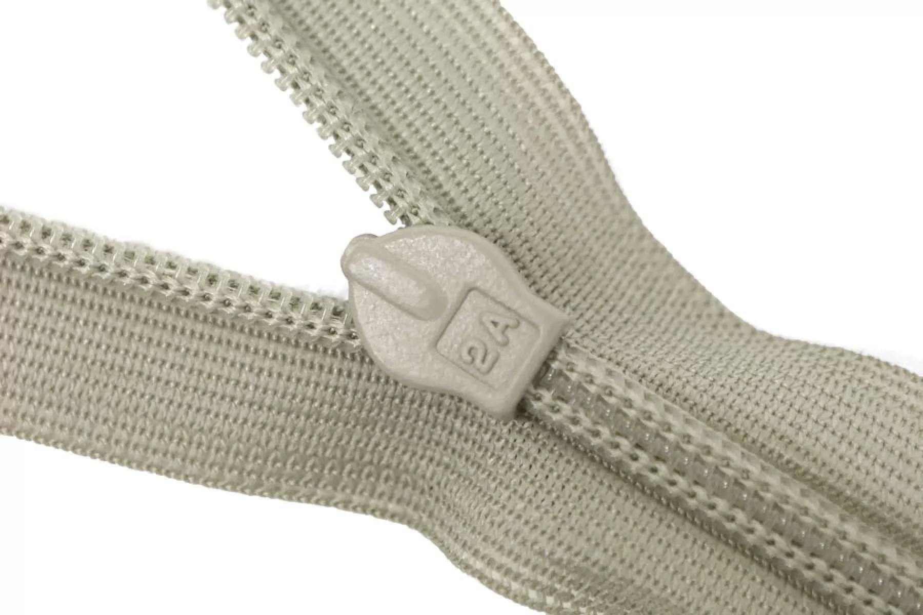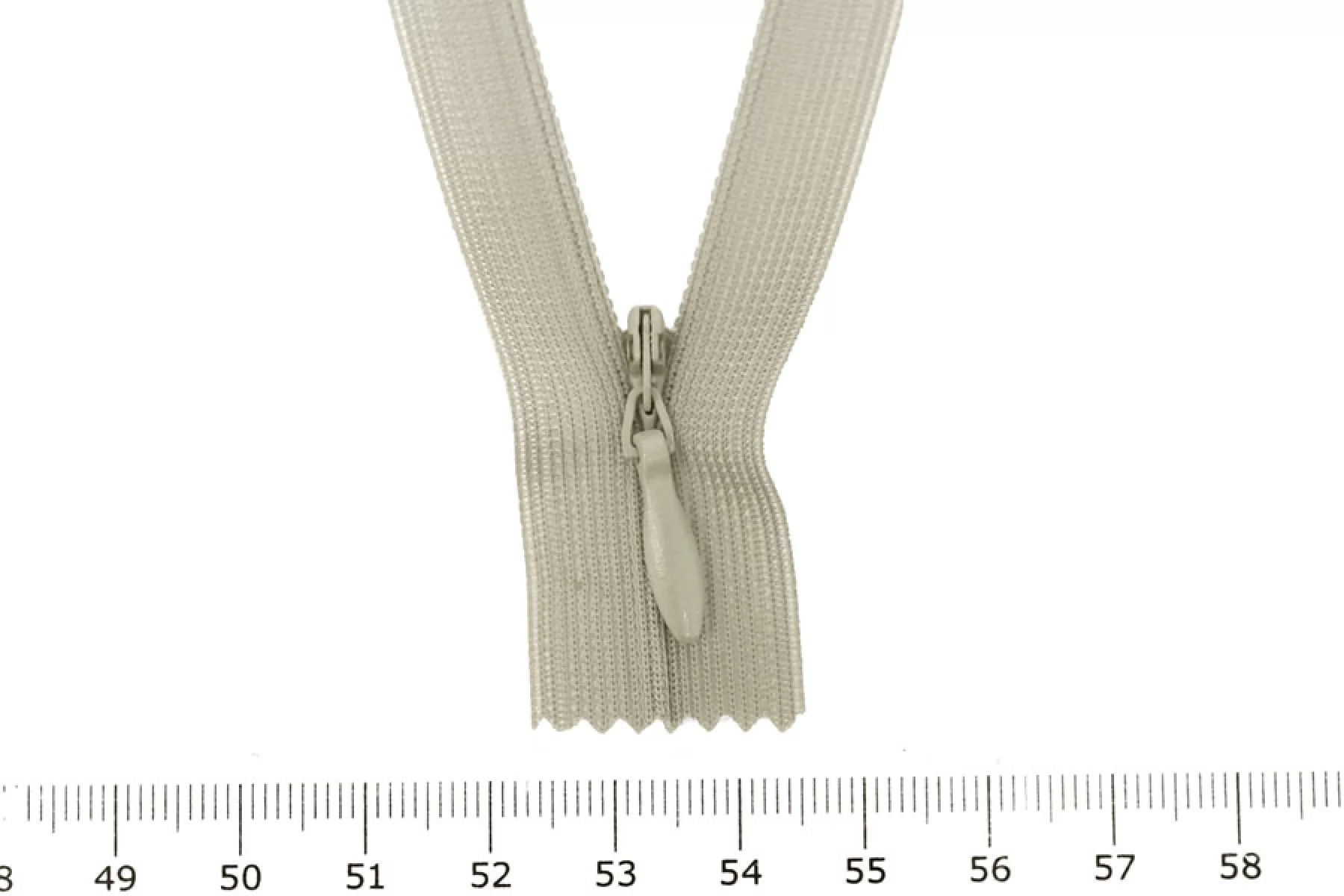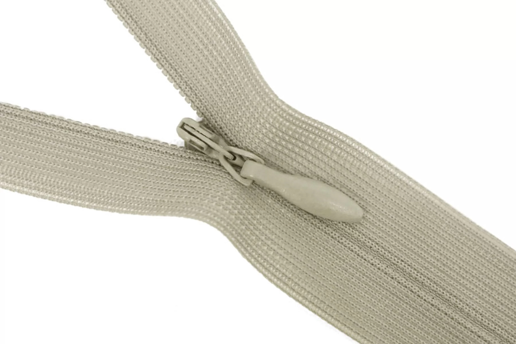 Потайная молния бежево-зеленого цвета , длина 20 см. Слайдер и пуллер - метал. в цвет молнии. Ширина молнии 2.2 см , ширина зубцов 4мм.