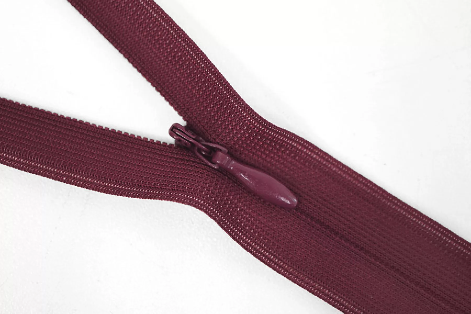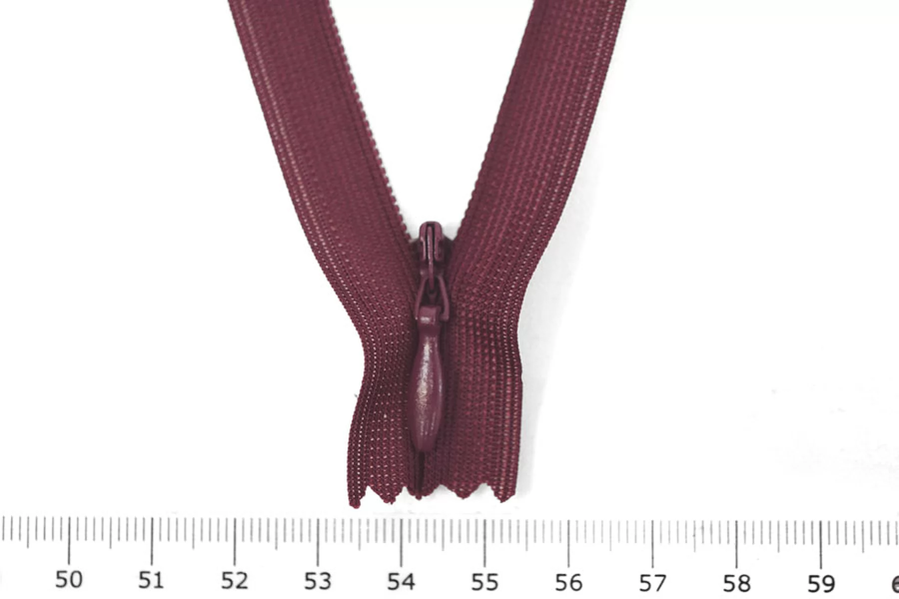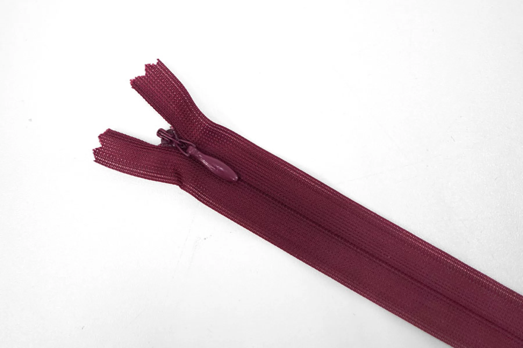 Потайная молния бордового цвета от бренда GZ , длина 20 см. Неразъемная. Зубцы пластиковые, слайдер и пуллер металл бордового цвета. Ширина молнии 2,2 см. Ширина зубцов 5 мм.