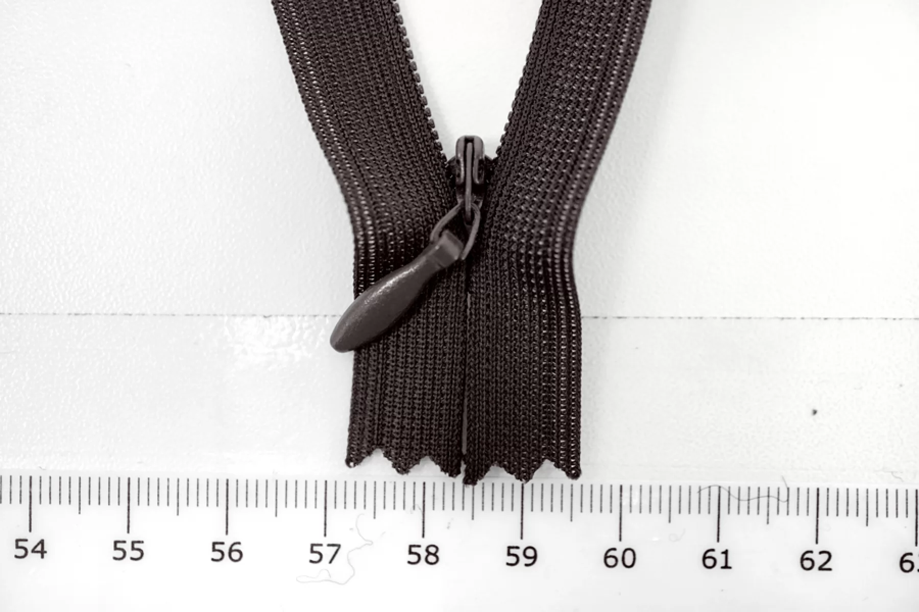 Потайная молния оттенка брауни от бренда UZ, длина 18,5 см. Неразъемная. Зубцы пластиковые, слайдер и пуллер - металл. Ширина молнии 2,2 см. Ширина зубцов 5 мм.