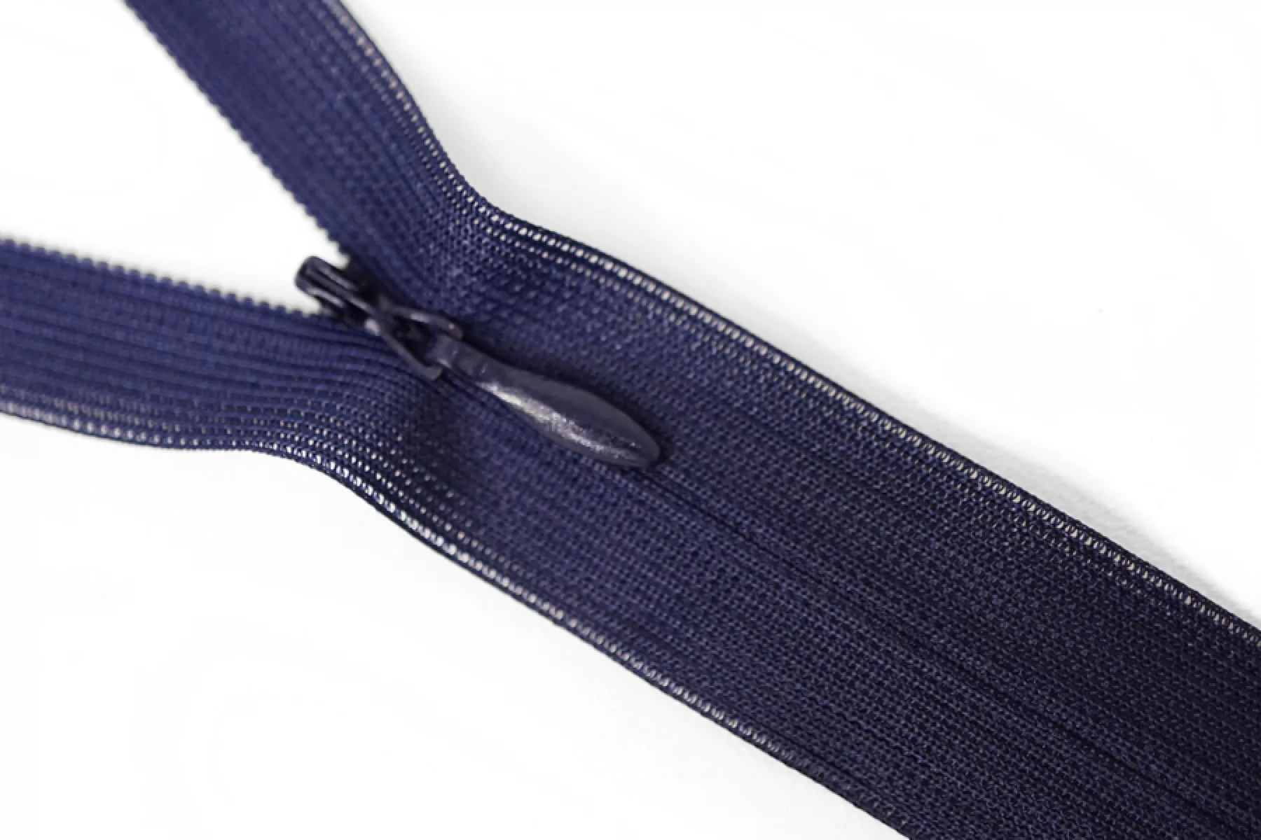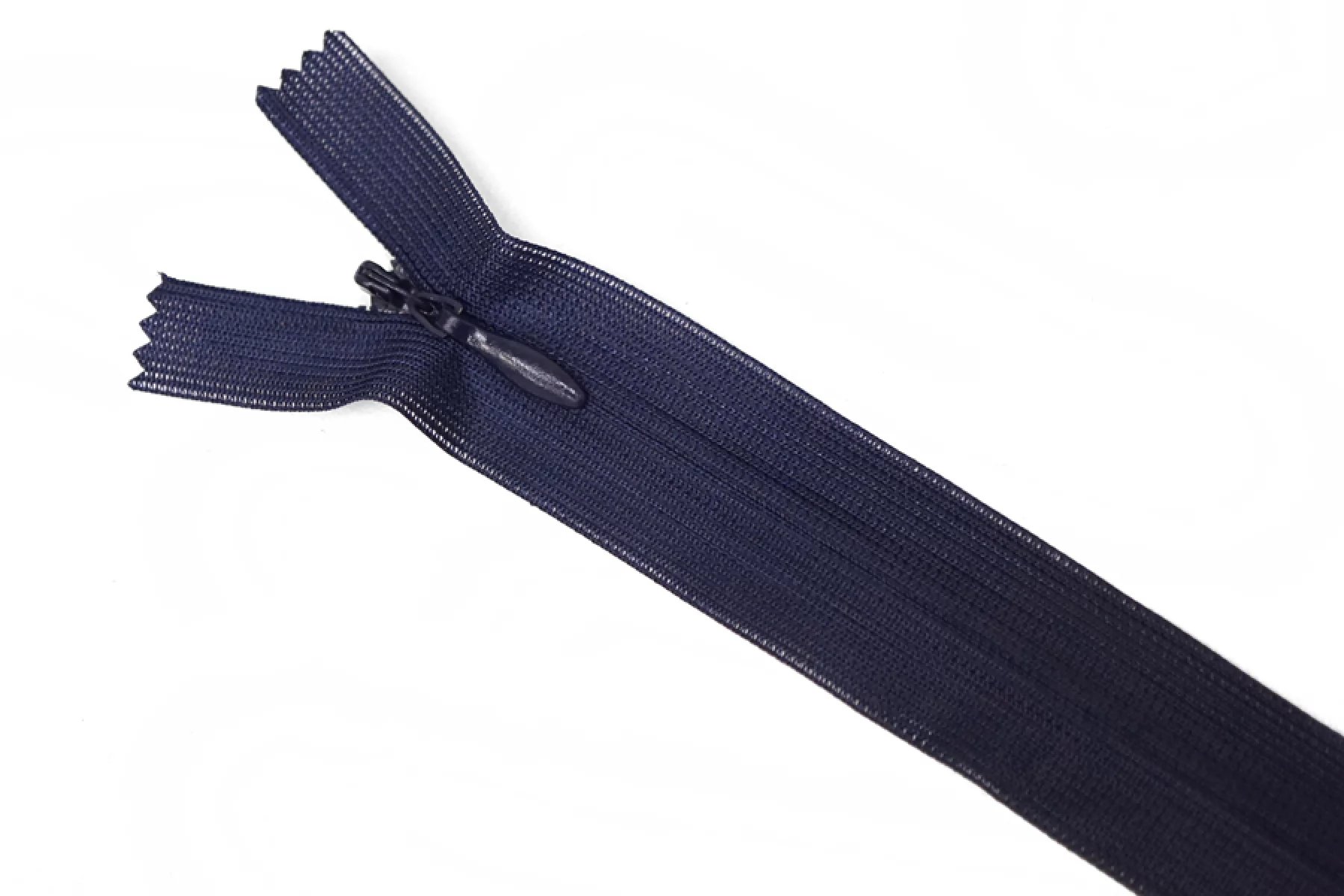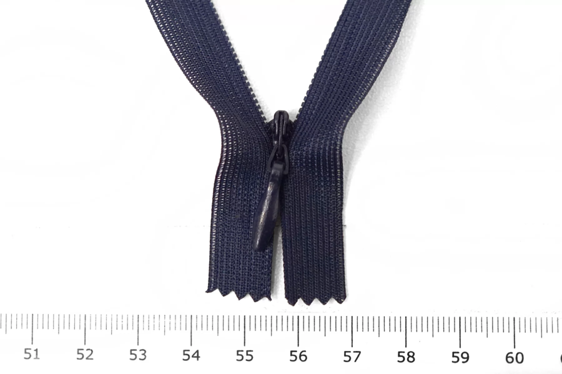 Потайная молния темно-синего цвета от бренда СZ , длина 60 см. Неразъемная. Зубцы пластиковые, слайдер и пуллер - металл в цвет молнии. Ширина молнии 2,2 см. Ширина зубцов 4 мм.