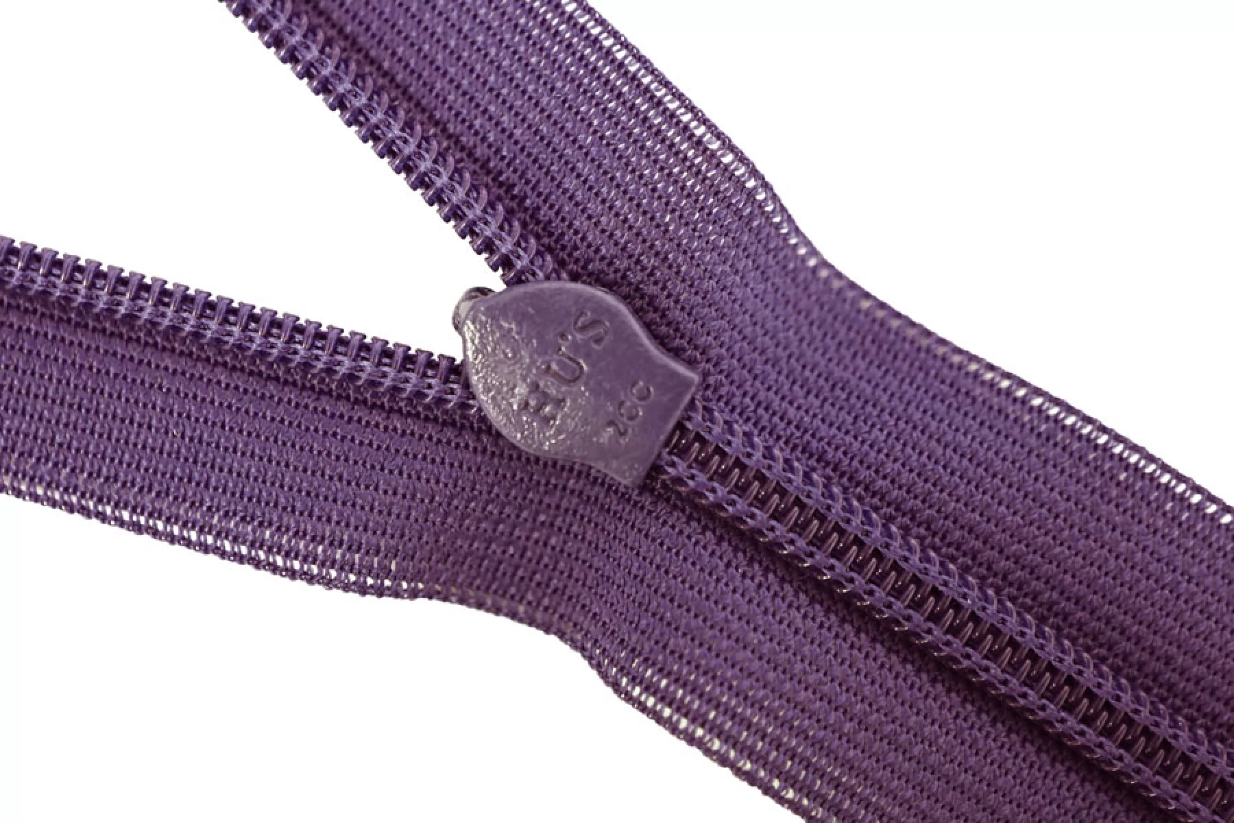 Потайная молния фиолетового цвета , длина 18 см. Неразъемная. Зубцы пластиковые, слайдер и пуллер - металл . Ширина молнии 2 см. Ширина зубцов 4 мм.