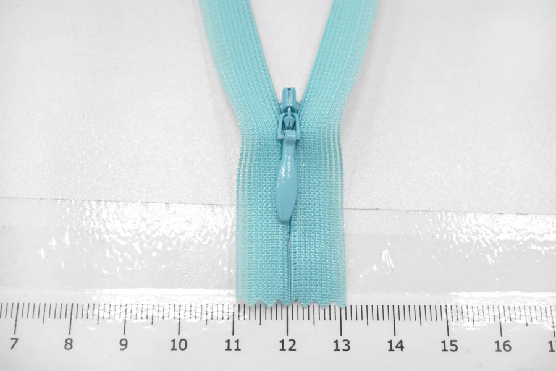 Потайная молния голубого цвета от YKK, длина 29 см.