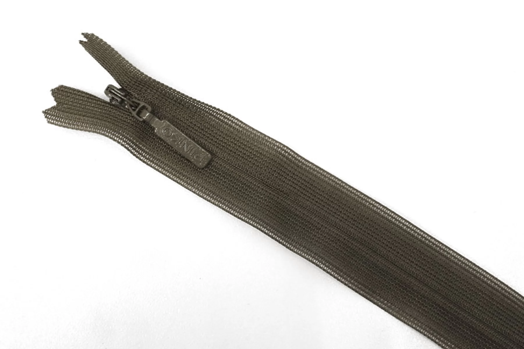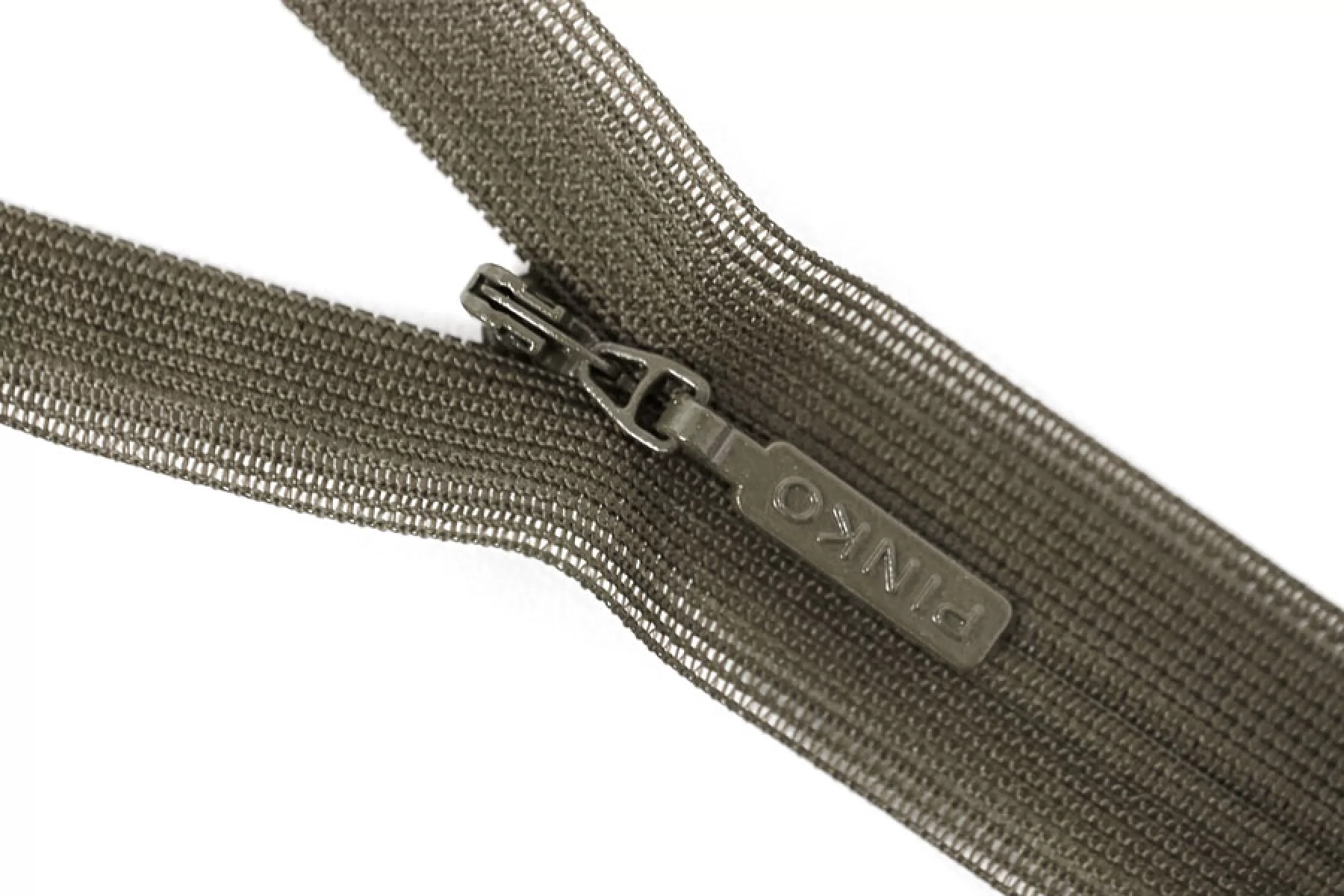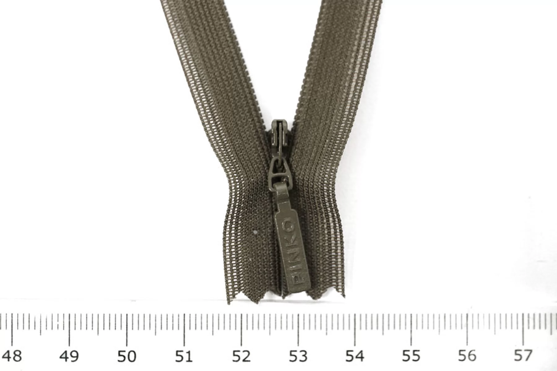 Потайная молния PINKO цвета хаки , длина 20 см. Слайдер и пуллер - метал. в цвет молнии. Ширина молнии 2.2 см , ширина зубцов 4мм.