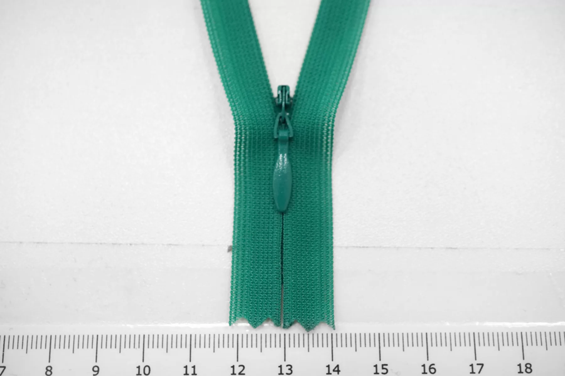 Потайная молния изумрудного цвета от YKK, длина 45.5 см.