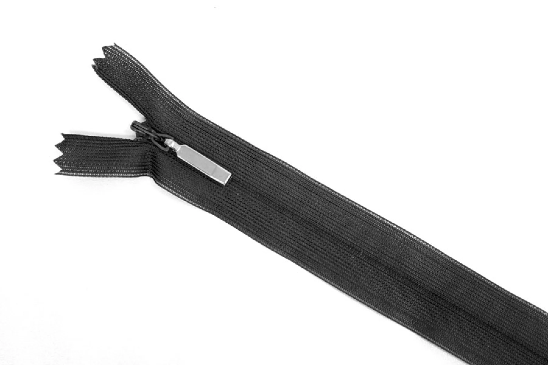 Потайная молния в цвете графит (темно-серый) , длина 22 см. Неразъемная. Зубцы пластиковые, слайдер - металл в цвет молнии, пулер металл цвета никель. Ширина молнии 2 см. Ширина зубцов 4 мм.