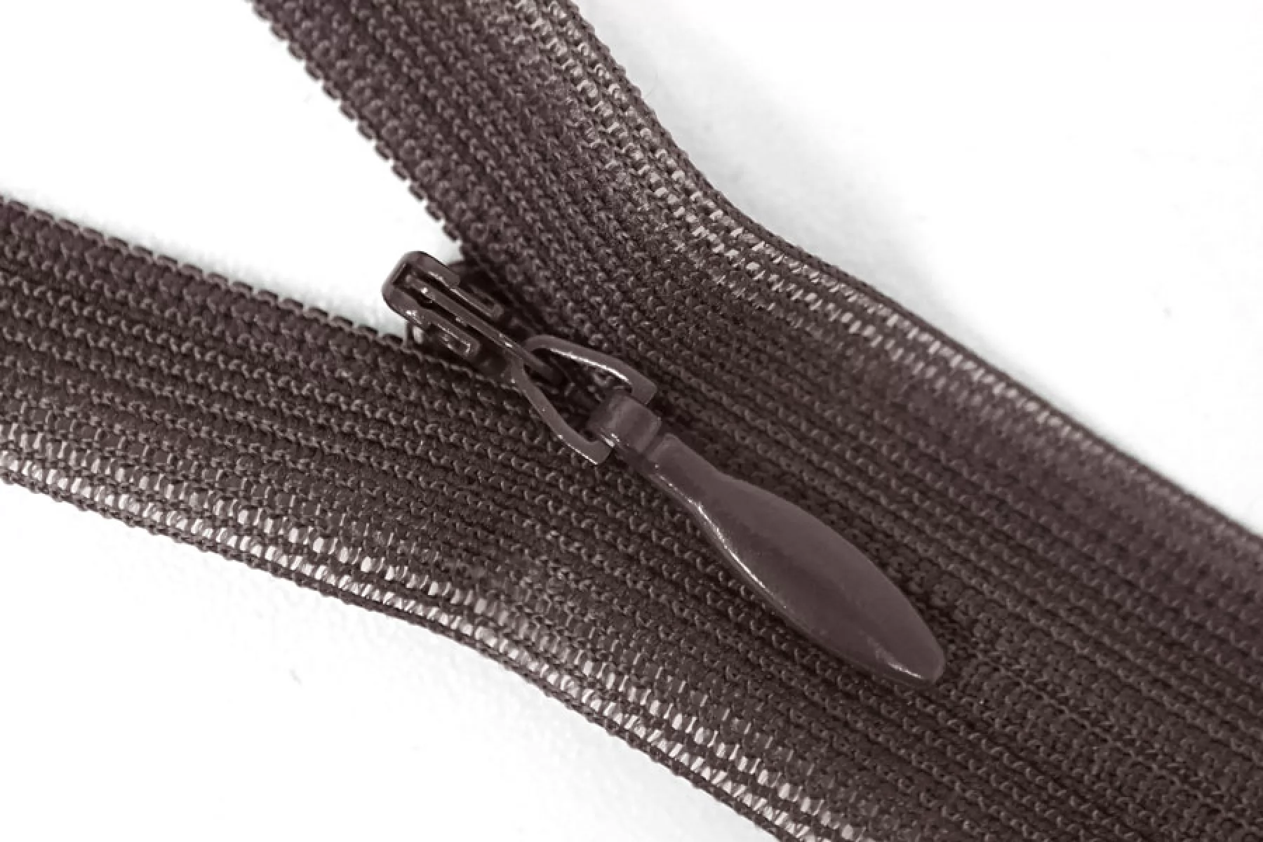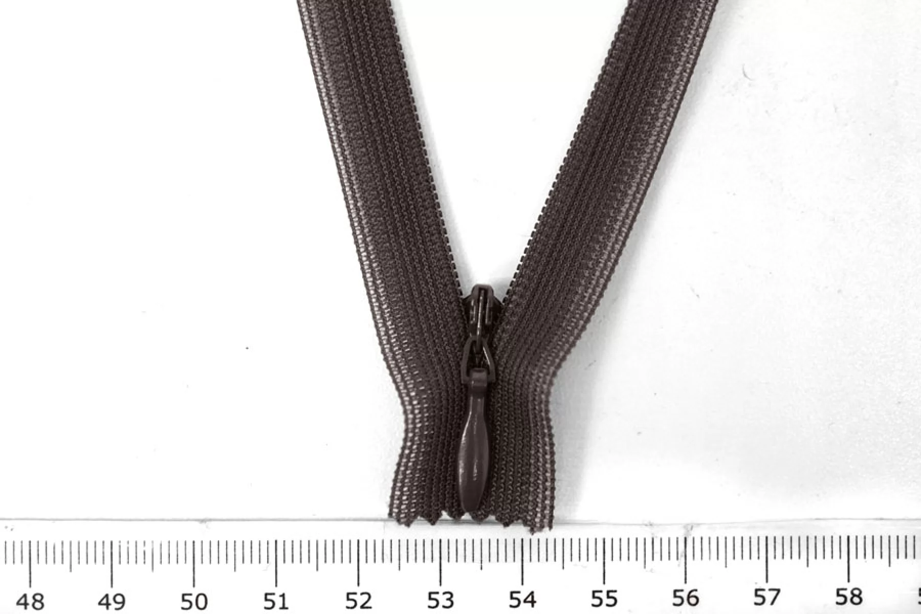 Молния потайная Коричневая MAS , длина 20 см. Неразъемная. Зубцы пластиковые, слайдер и пуллер - металл вцвет молнии. Ширина молнии 2,2 см. Ширина зубцов 4 мм.