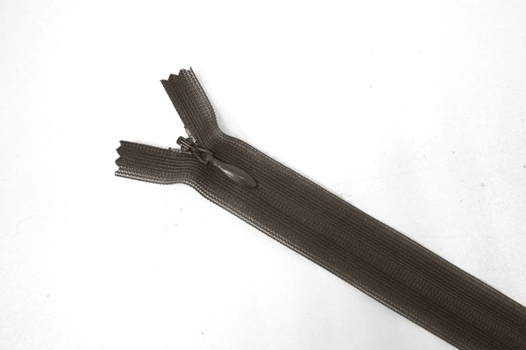 Молния потайная Коричневая , длина 22 см. Неразъемная. Зубцы пластиковые, слайдер и пуллер - металл в цвет молнии. Ширина молнии 2,2 см. Ширина зубцов 4 мм.