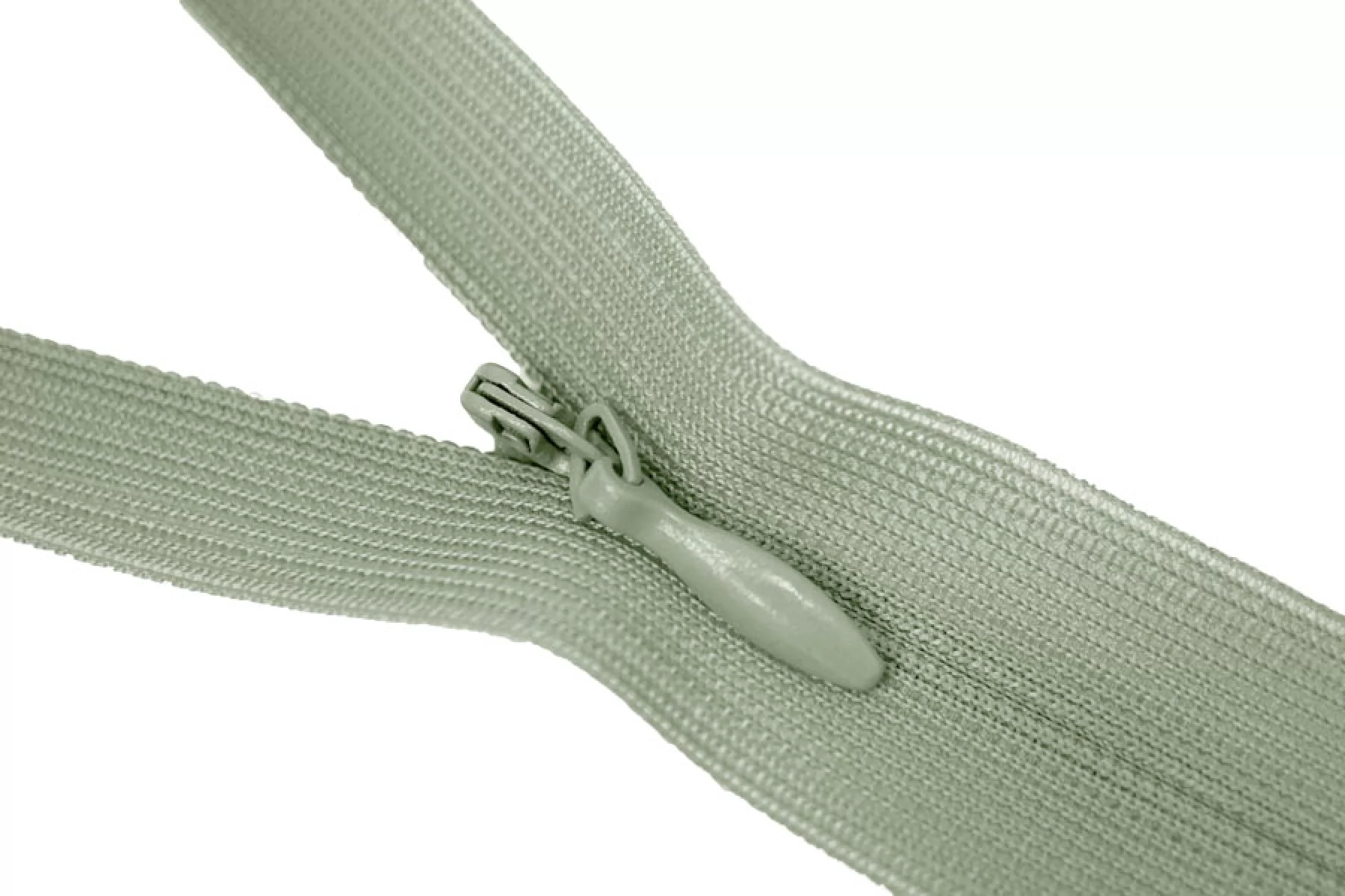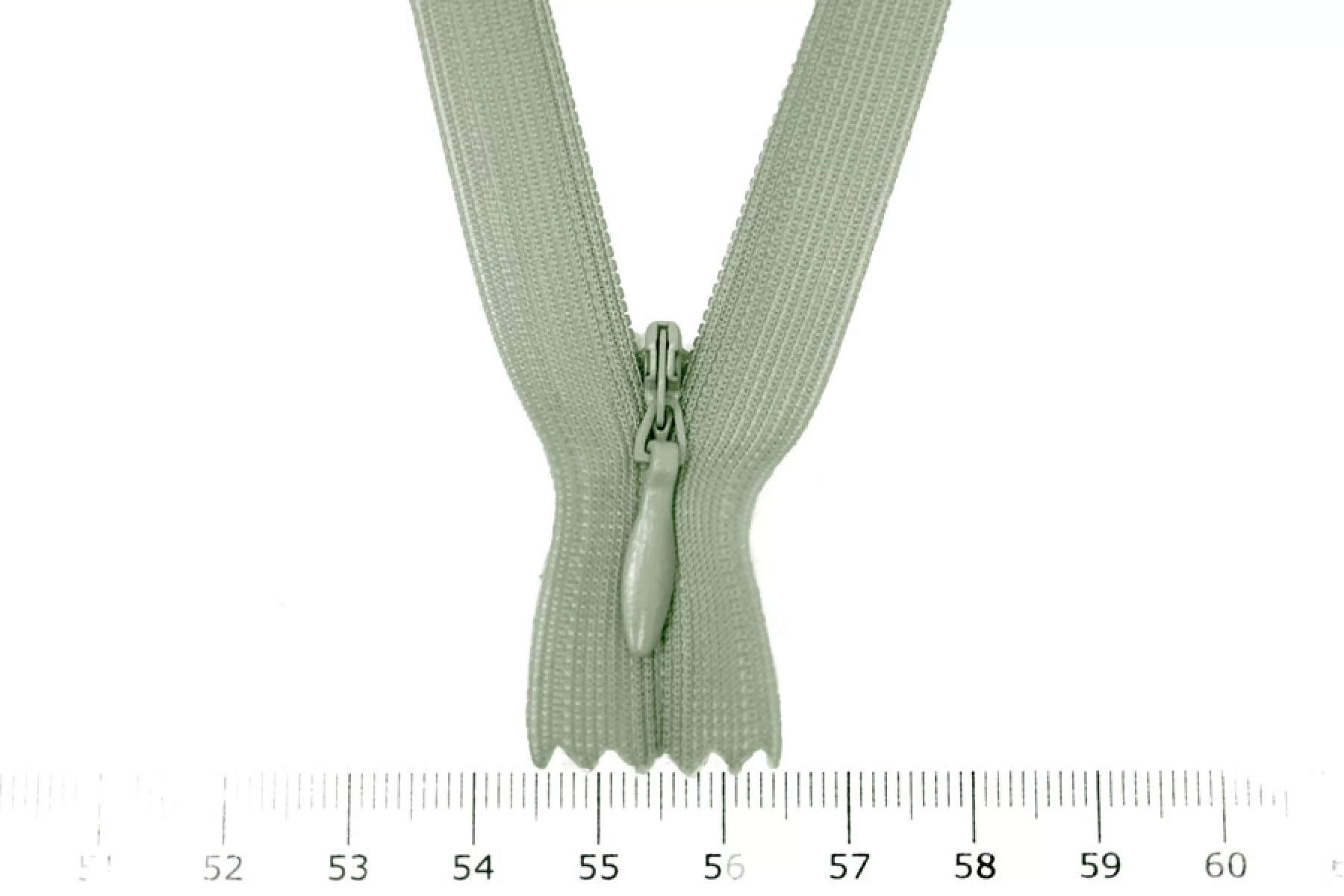 Потайная молния мятного цвета , длина 18 см. Слайдер и пуллер - метал. в цвет молнии. Ширина молнии 2.2 см , ширина зубцов 4мм.