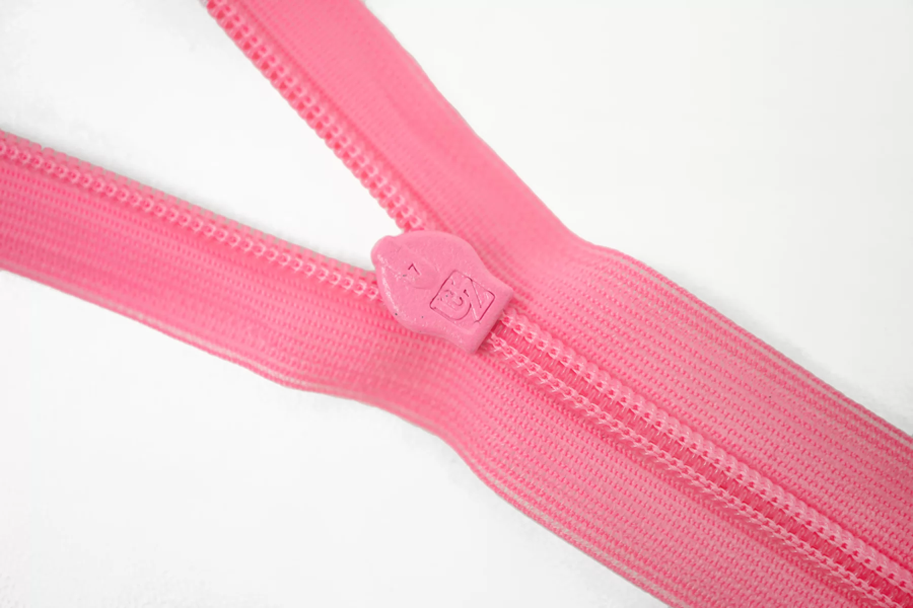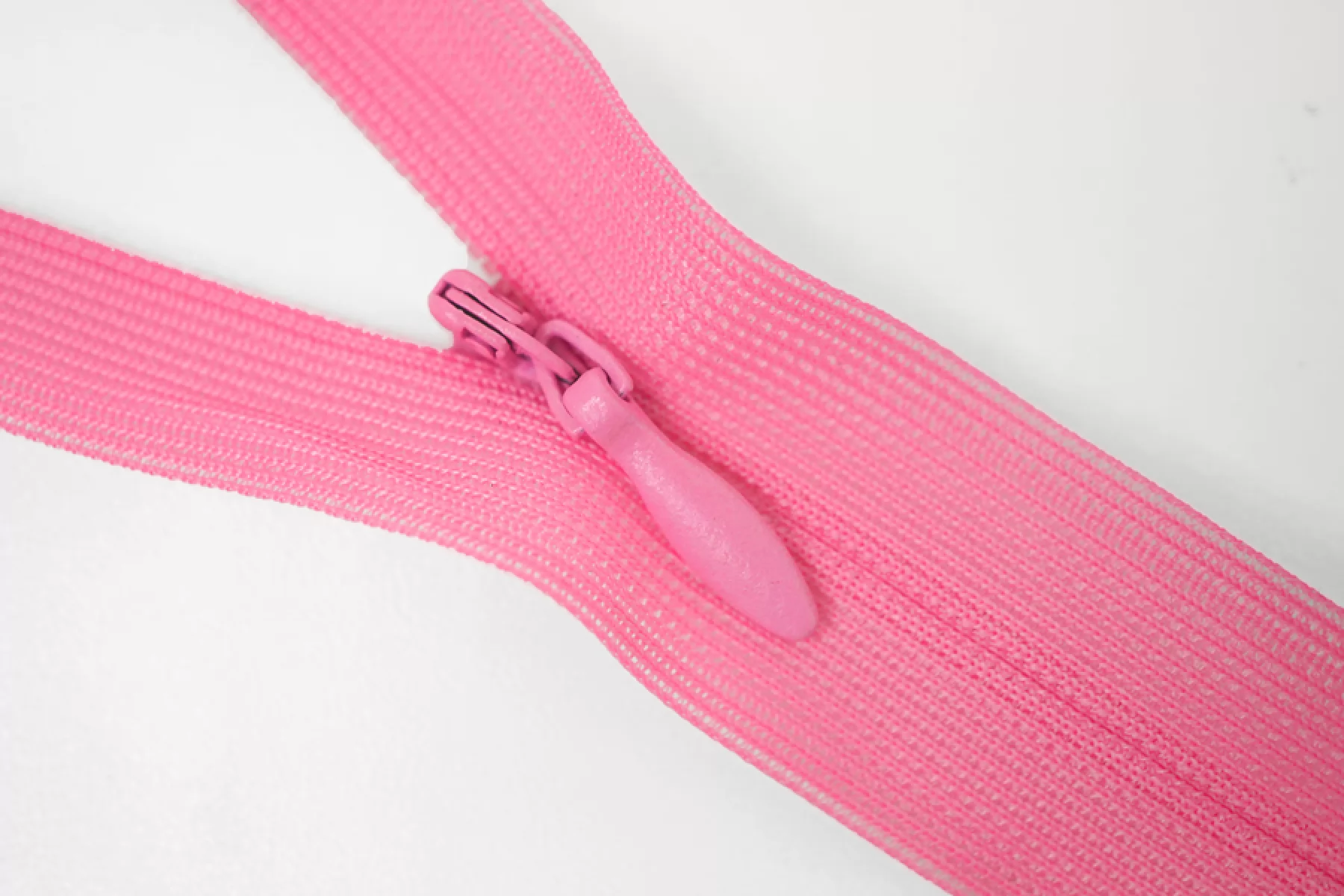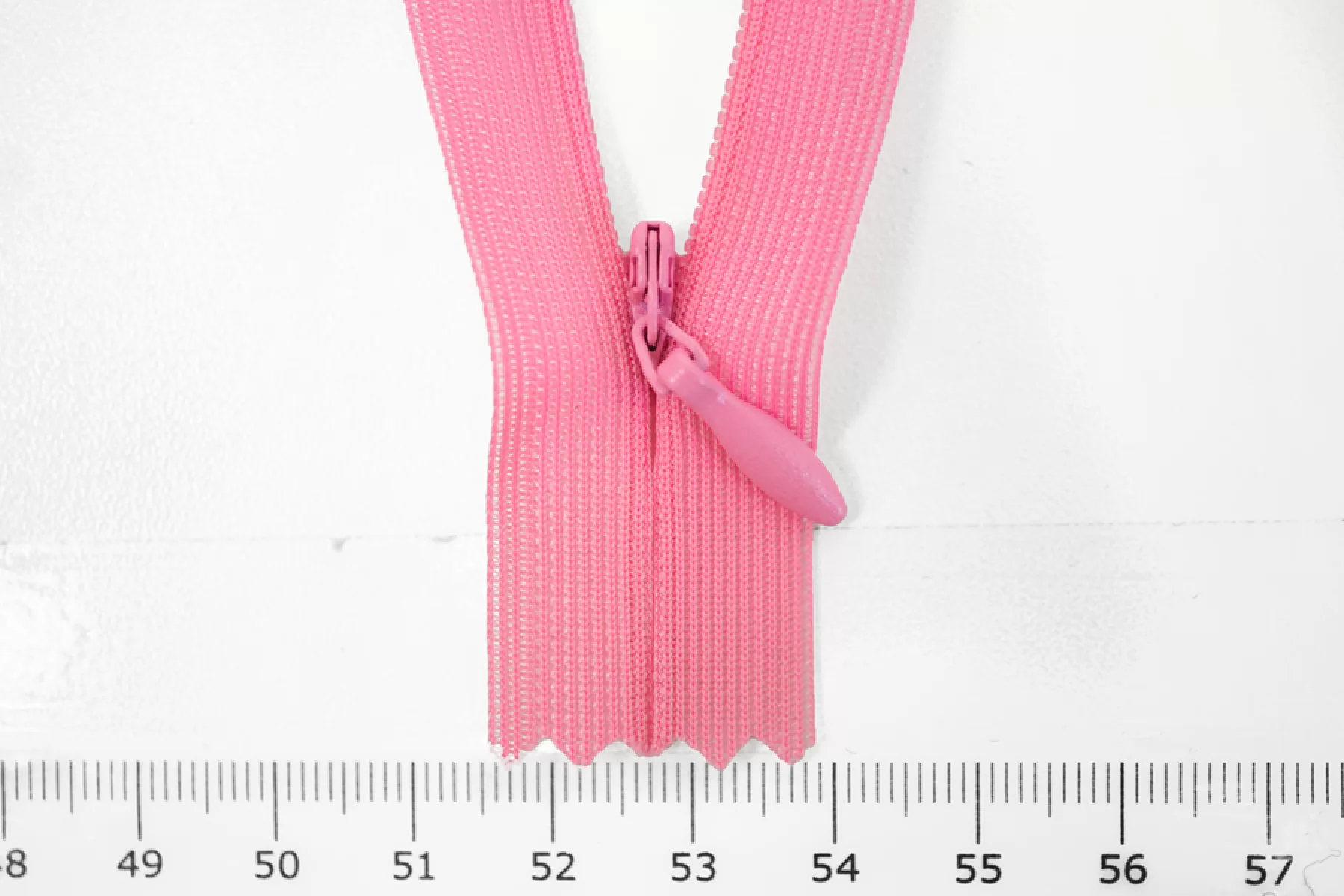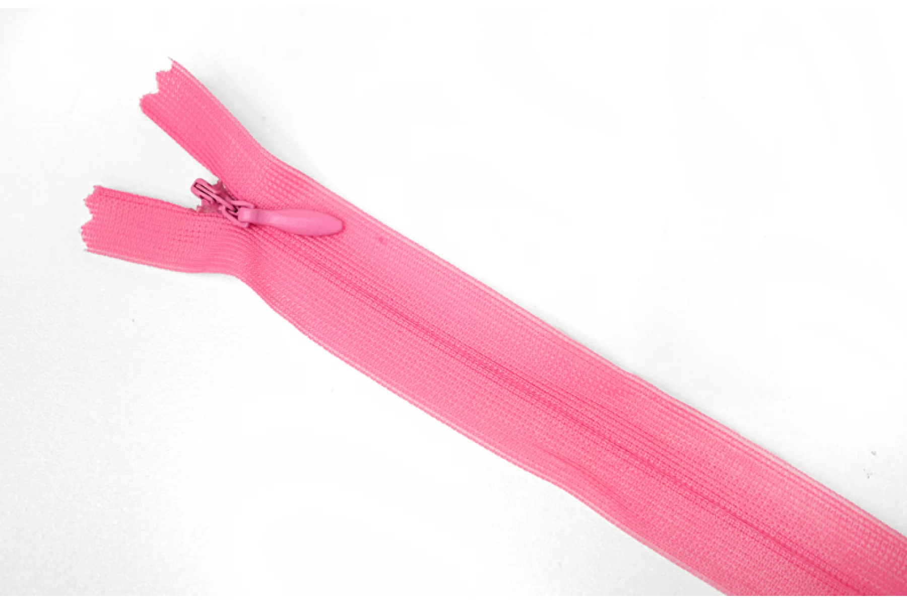 Потайная молния красивого неоново-розового оттенка от UZ, длина 40,5 см. Неразъемная. Зубцы пластиковые, слайдер и пуллер - металл. Ширина молнии 2,2 см. Ширина зубцов 4 мм.