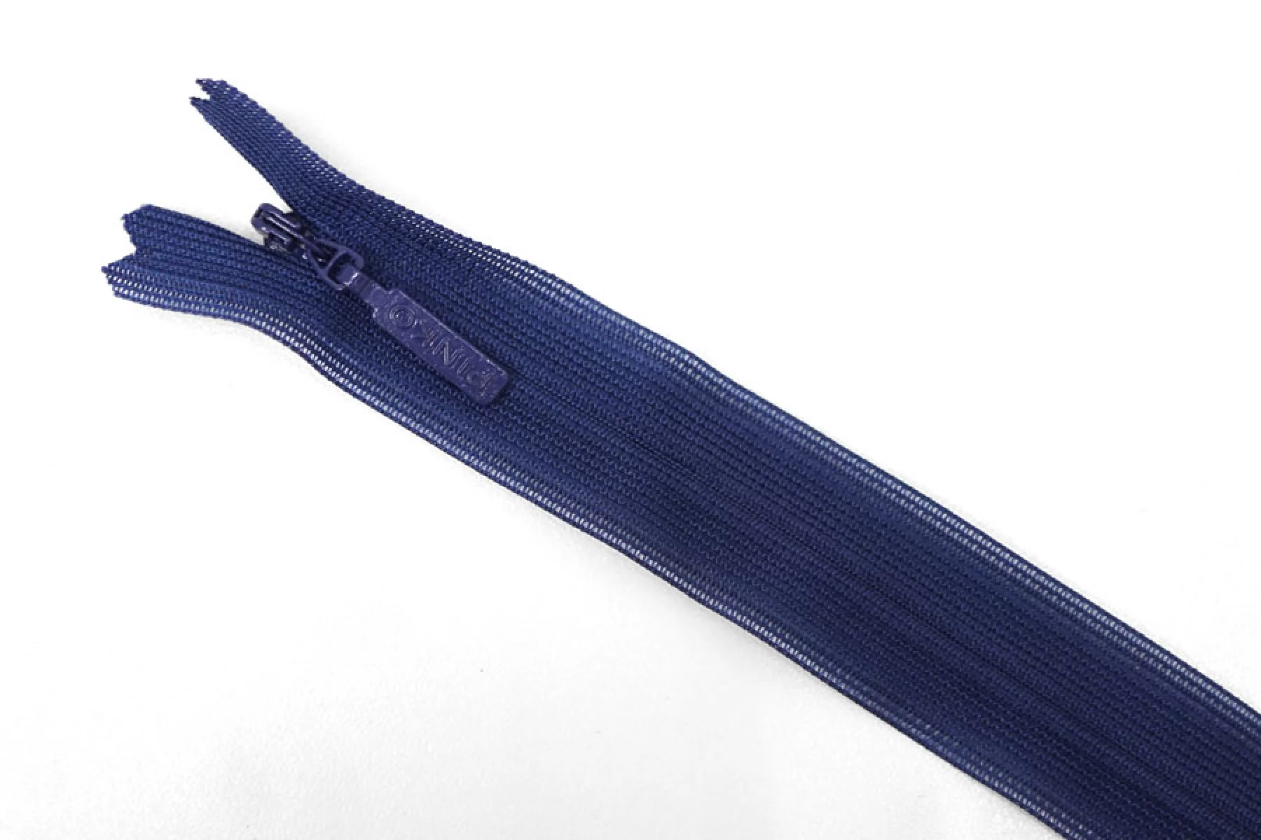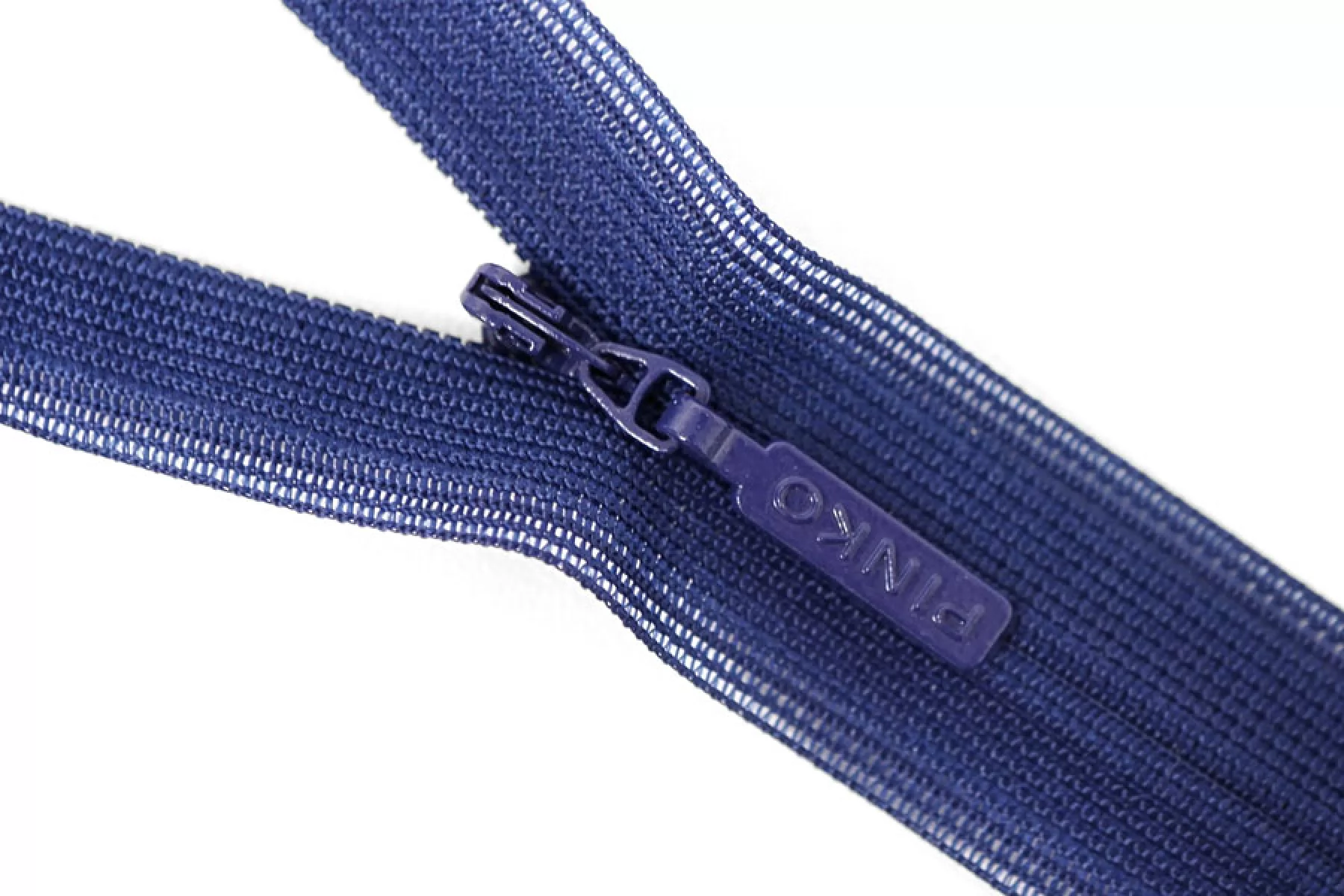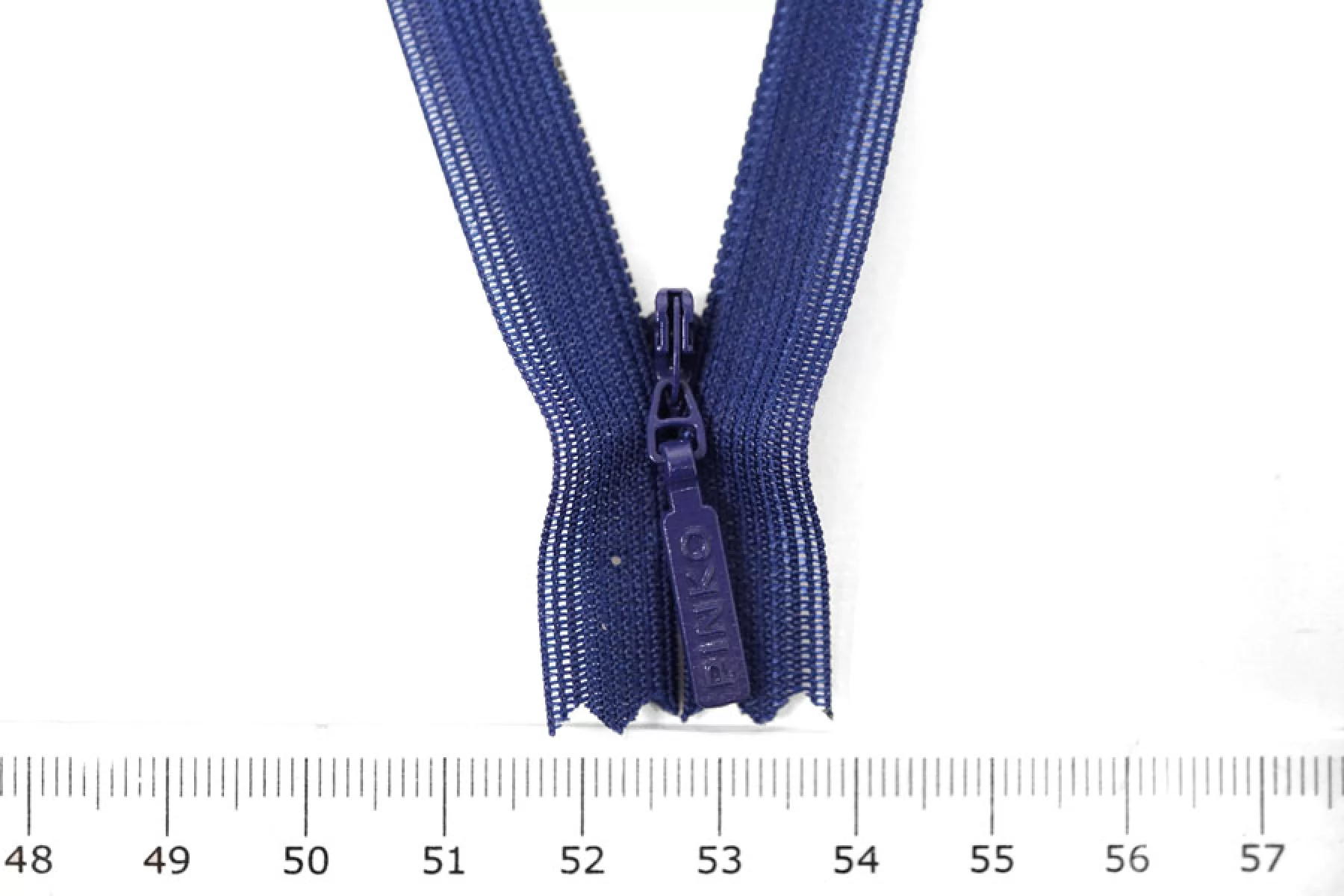Потайная молния синего оттенка от бренда PINKO , длина 20 см. Неразъемная. Зубцы пластиковые, слайдер и пуллер - металл. Ширина молнии 2,2 см. Ширина зубцов 4 мм.