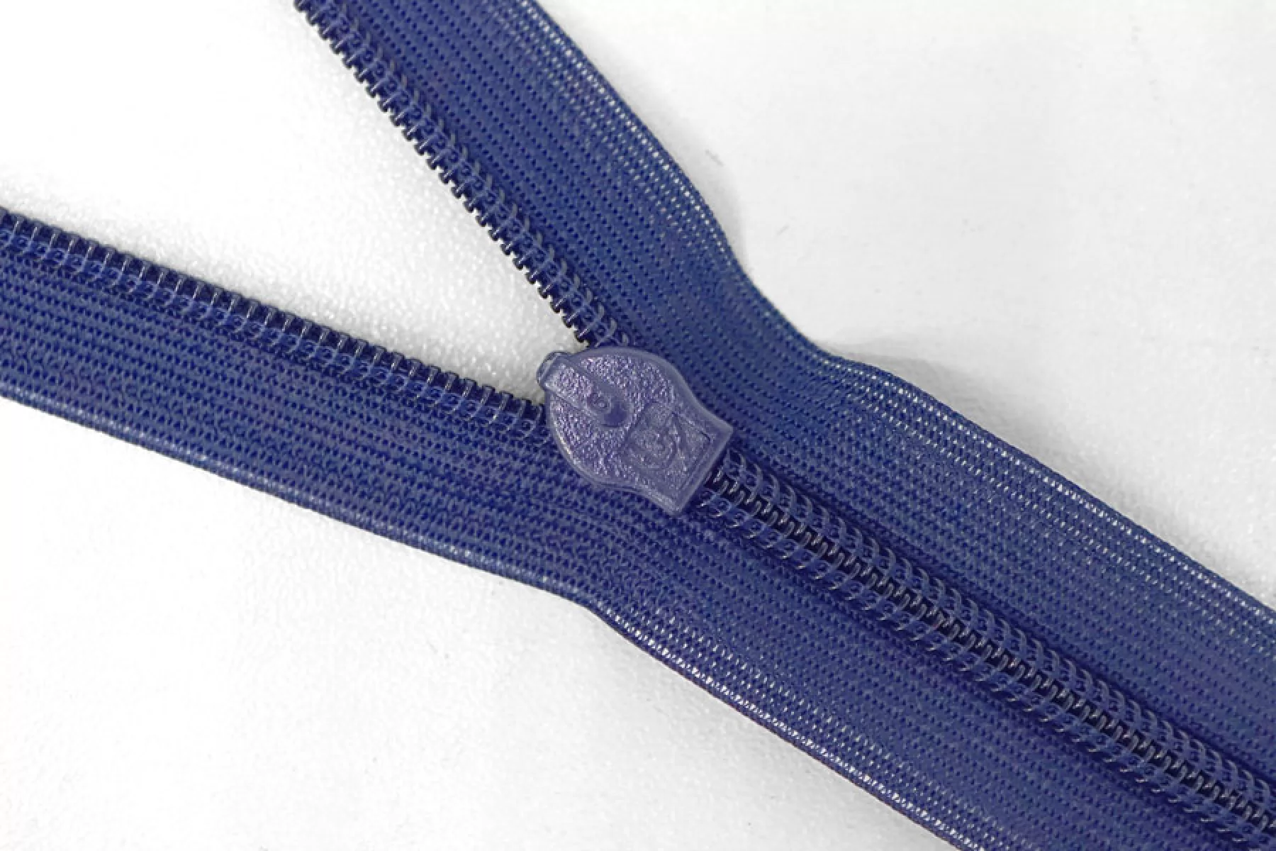 Потайная молния ярко-синего оттенка , длина 22 см. Неразъемная. Зубцы пластиковые, слайдер и пуллер - металл в цвет молнии. Ширина молнии 2,2 см. Ширина зубцов 4 мм.