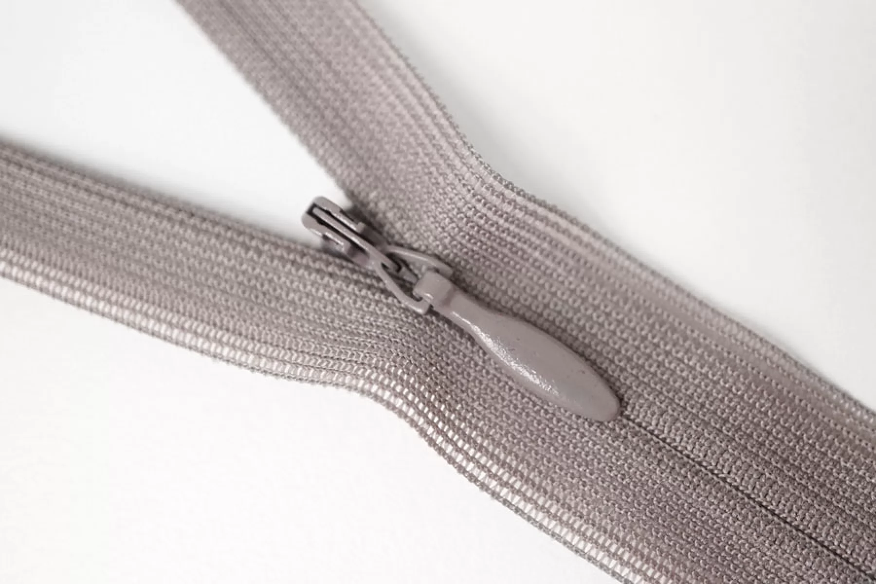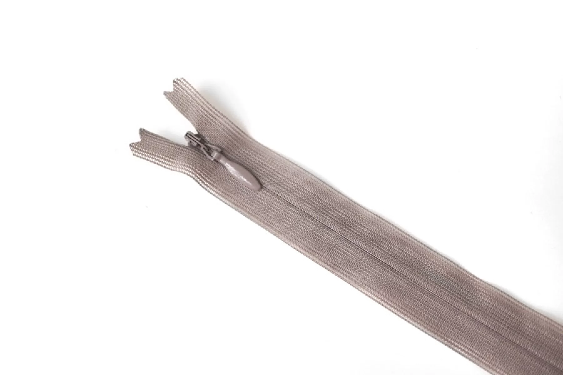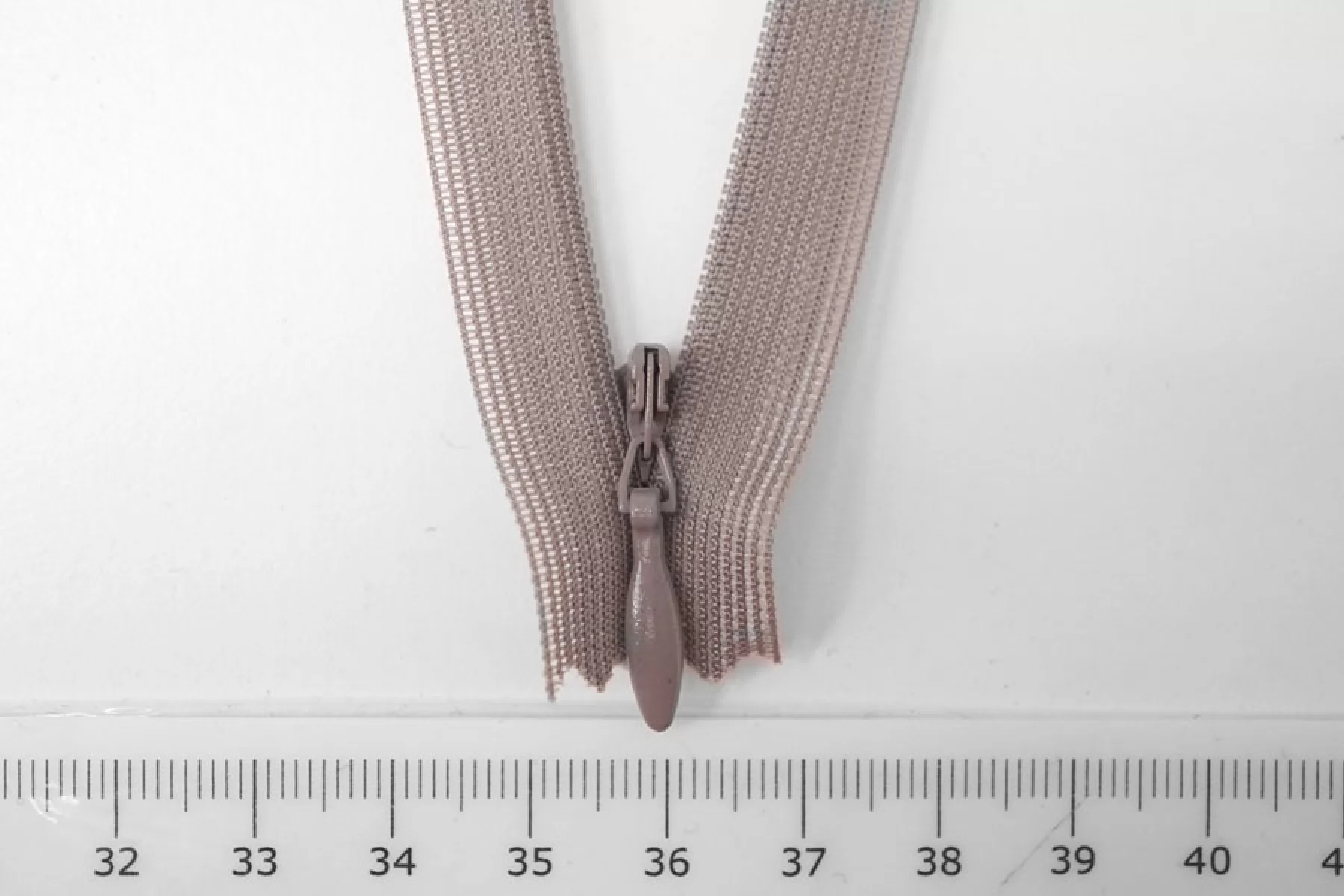 Потайная молния неразъемная, кофейно-пепельного оттенка, от YKK , длина 31,5 см. Неразъемная. Зубцы пластиковые, слайдер и пуллер - металл. Ширина молнии 2 см. Ширина зубцов 4 мм.