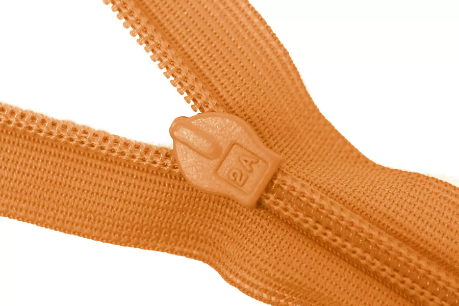 Потайная молния оранжевого оттенка , длина 18 см. Неразъемная. Зубцы пластиковые, слайдер и пуллер - металл. Ширина молнии 2 см. Ширина зубцов 4 мм.