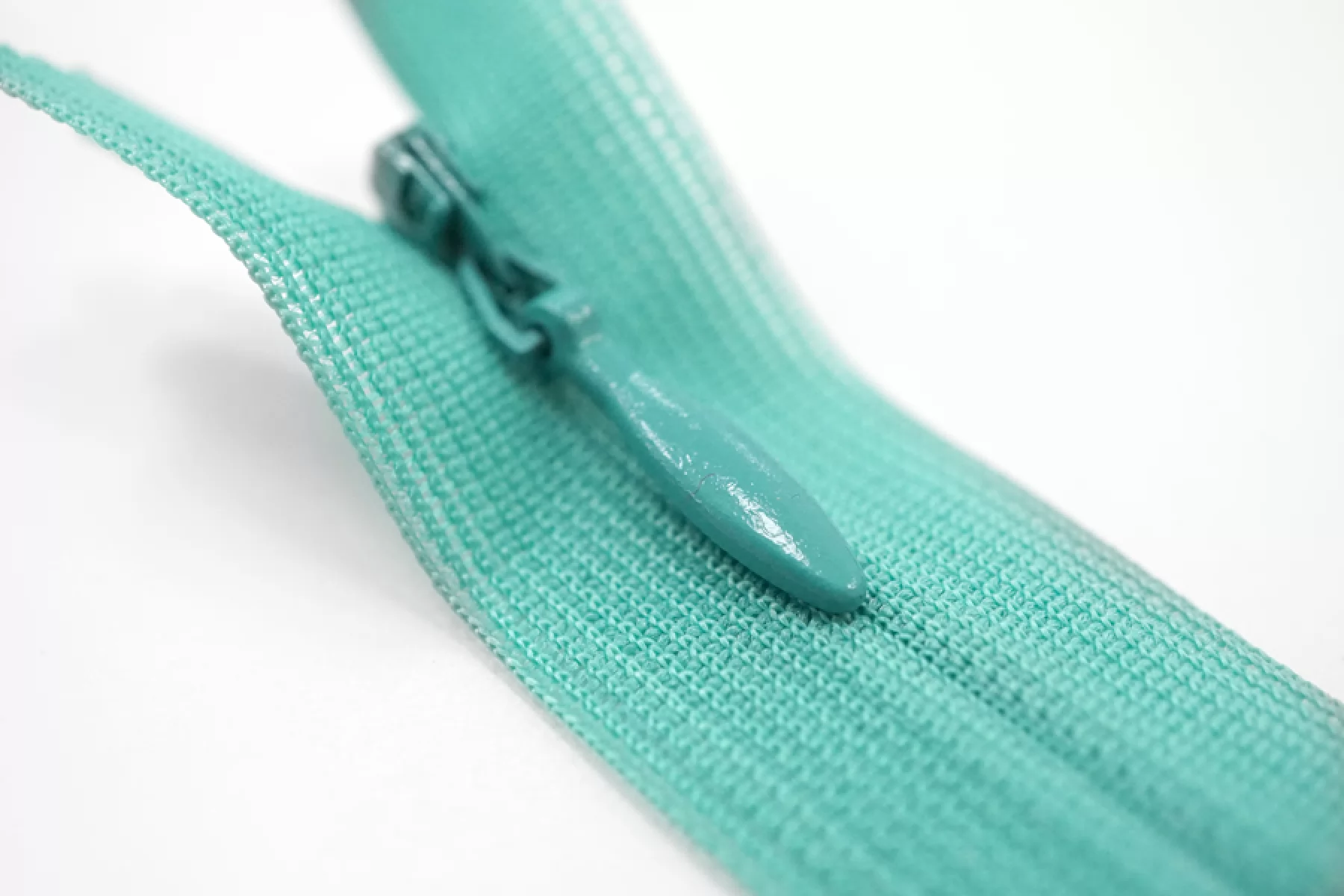 Потайная молния пастельно-бирюзового цвета от YKK, длина 15 см.