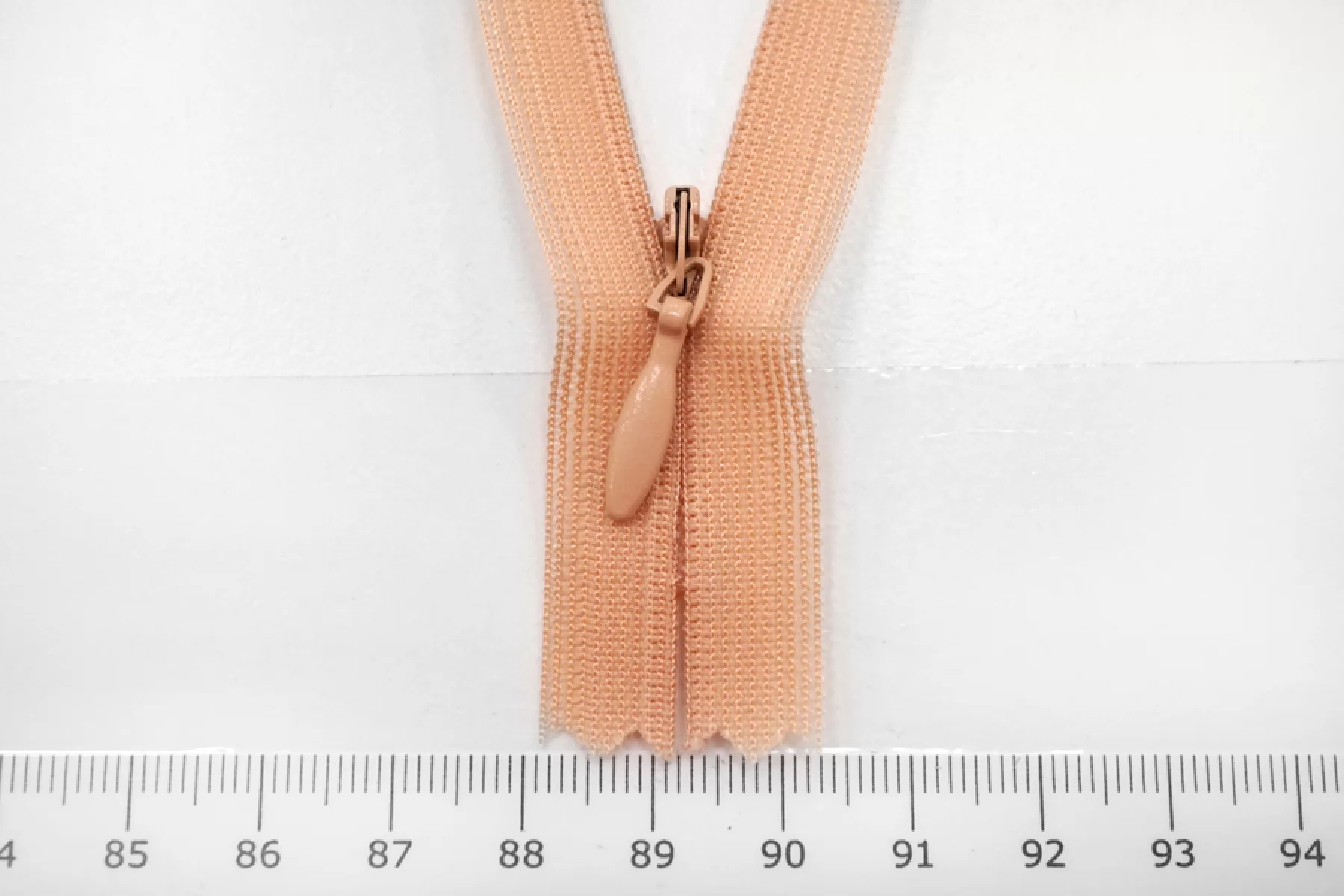 Потайная молния астельно-персикового цвета от YKK, длина 19 см.