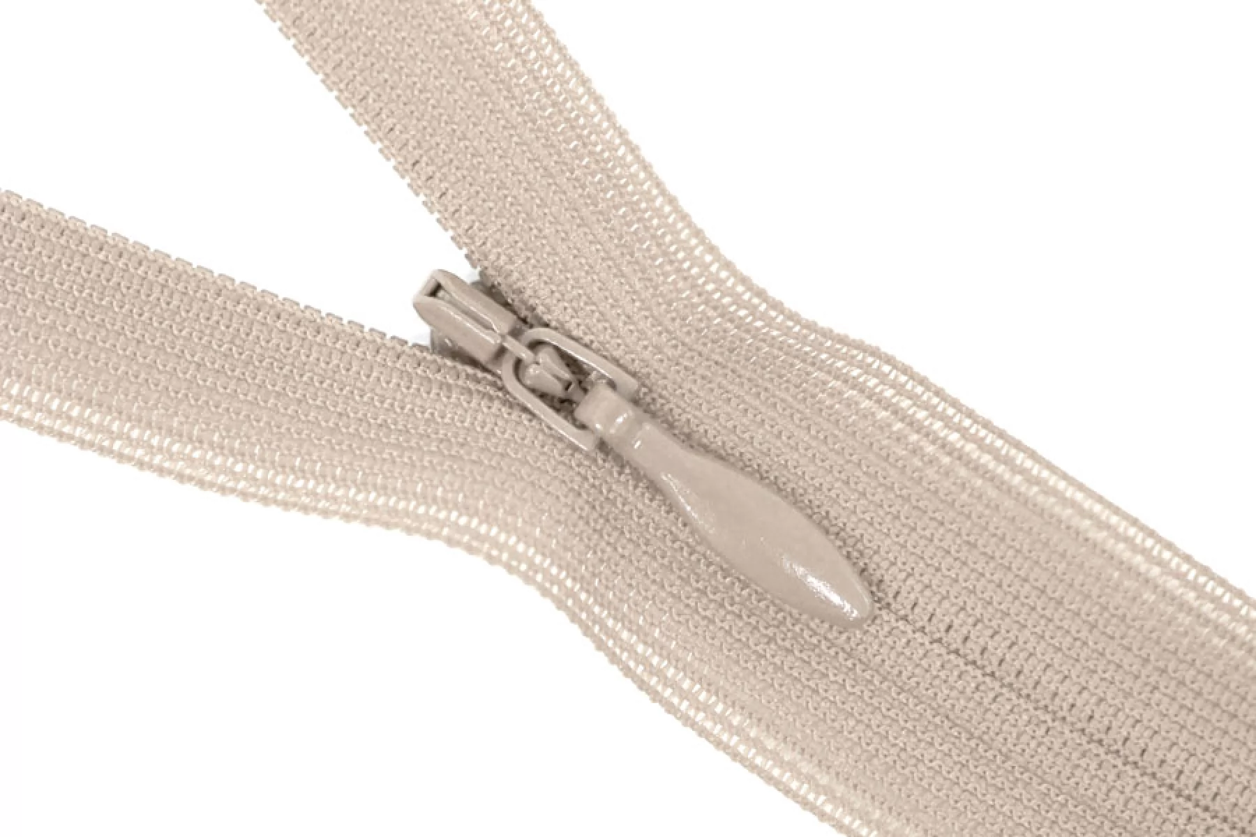 Молния потайная пудрово-бежевый от бренда YKK , длина 13 см. Неразъемная. Зубцы пластиковые, слайдер и пуллер - металл вцвет молнии. Ширина молнии 2,2 см. Ширина зубцов 4 мм.