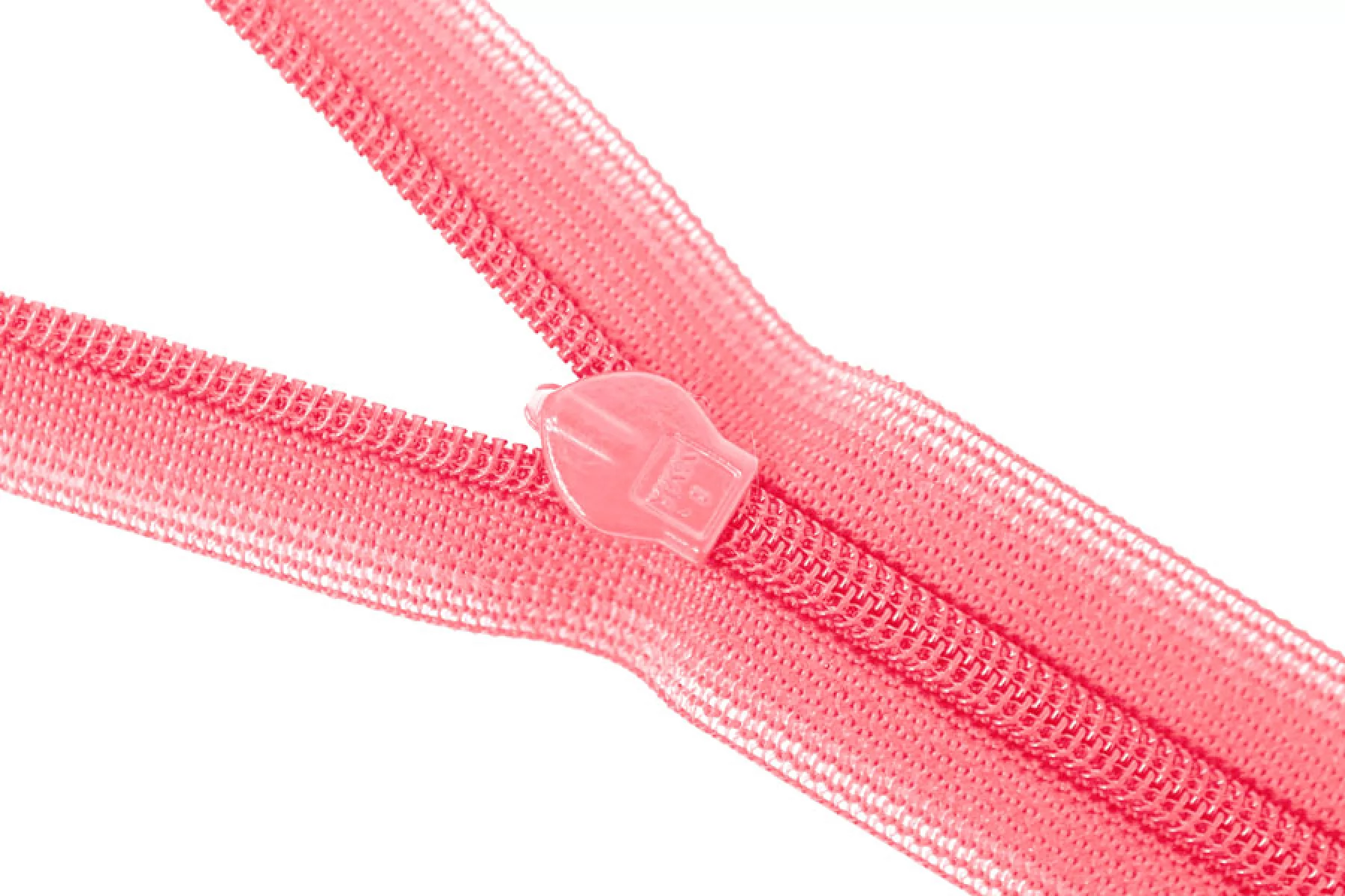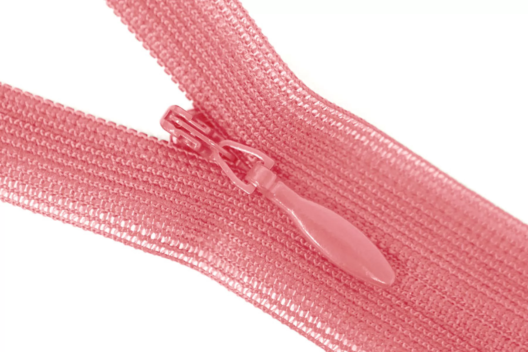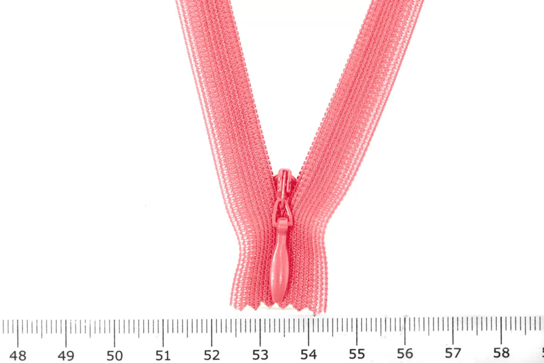 Потайная молния розового цвета от YKK, длина 20 см. Слайдер и пулер -металл. в цвет молнии. Ширина молнии 2,2 см, ширина зубцов 4мм.