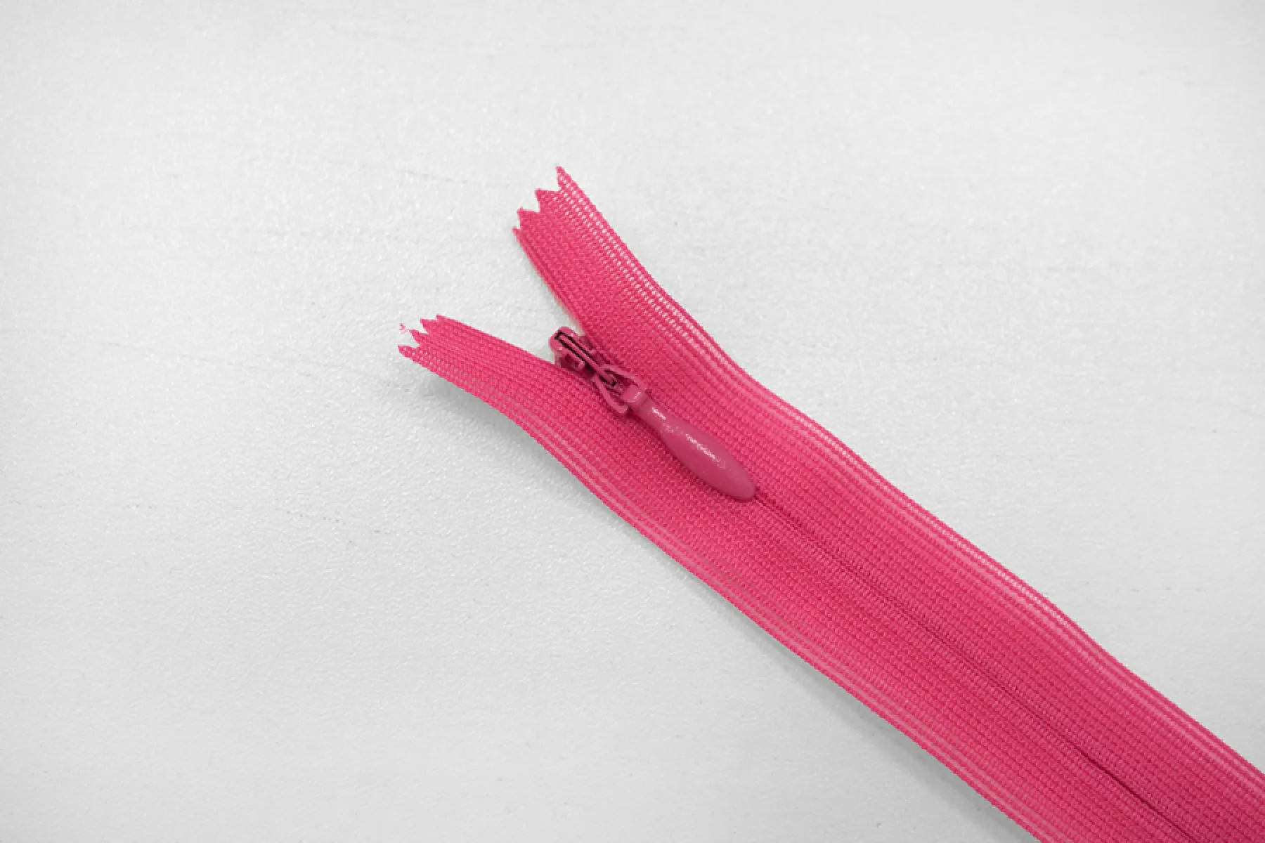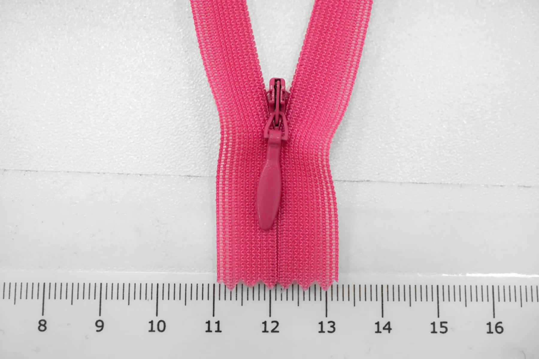 Потайная молния розового цвета от YKK, длина 7.5 см.