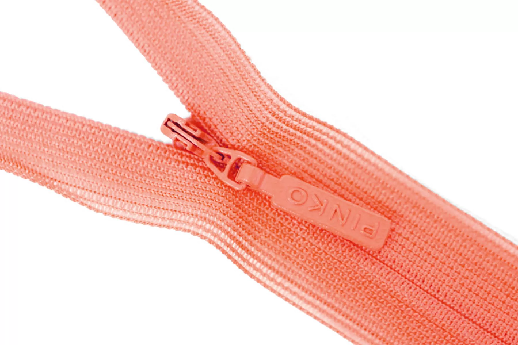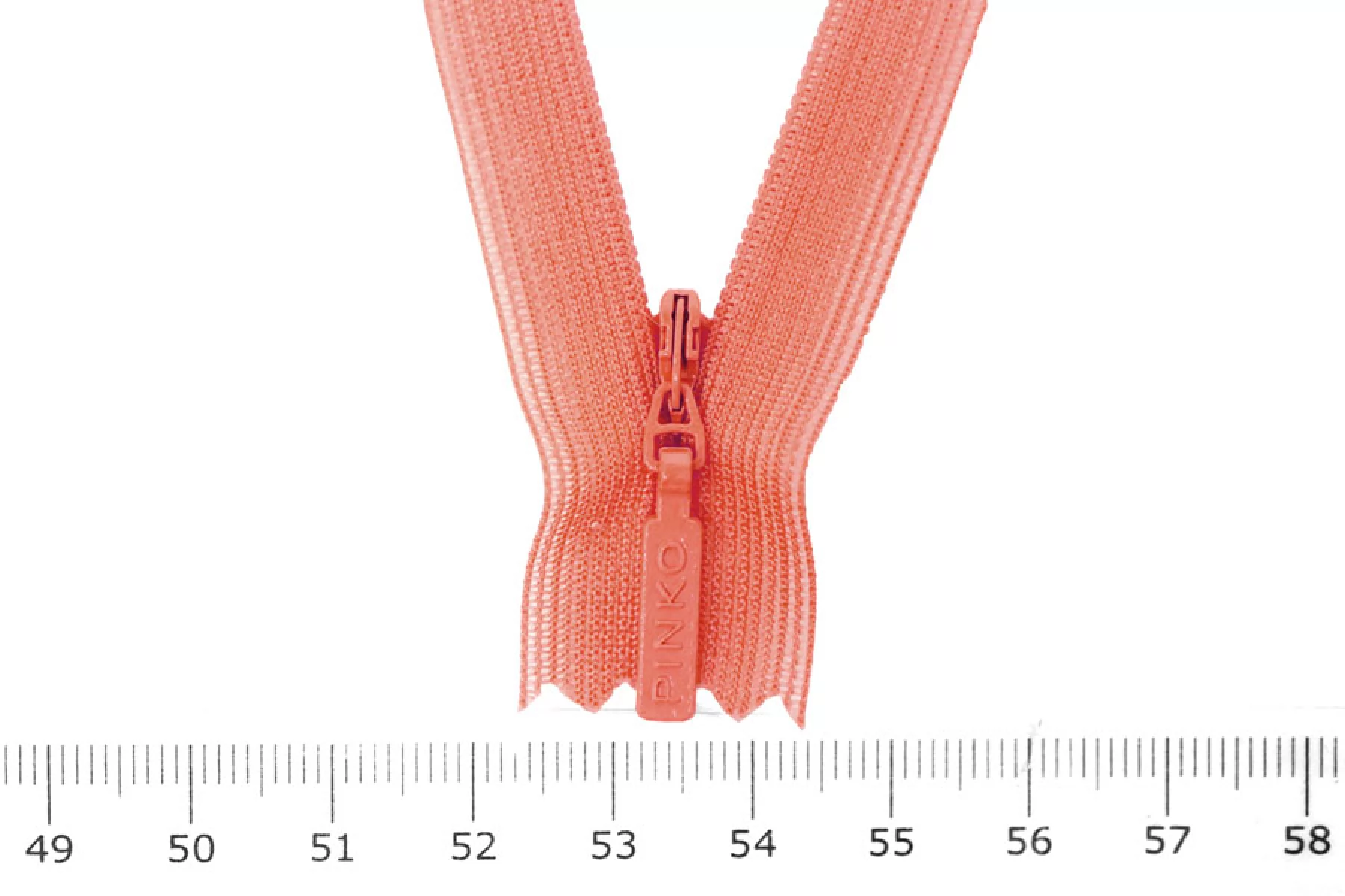Потайная молния розового цвета , длина 19 см. Неразъемная. Зубцы пластиковые, слайдер и пуллер - металл. Ширина молнии 2 см. Ширина зубцов 4 мм.