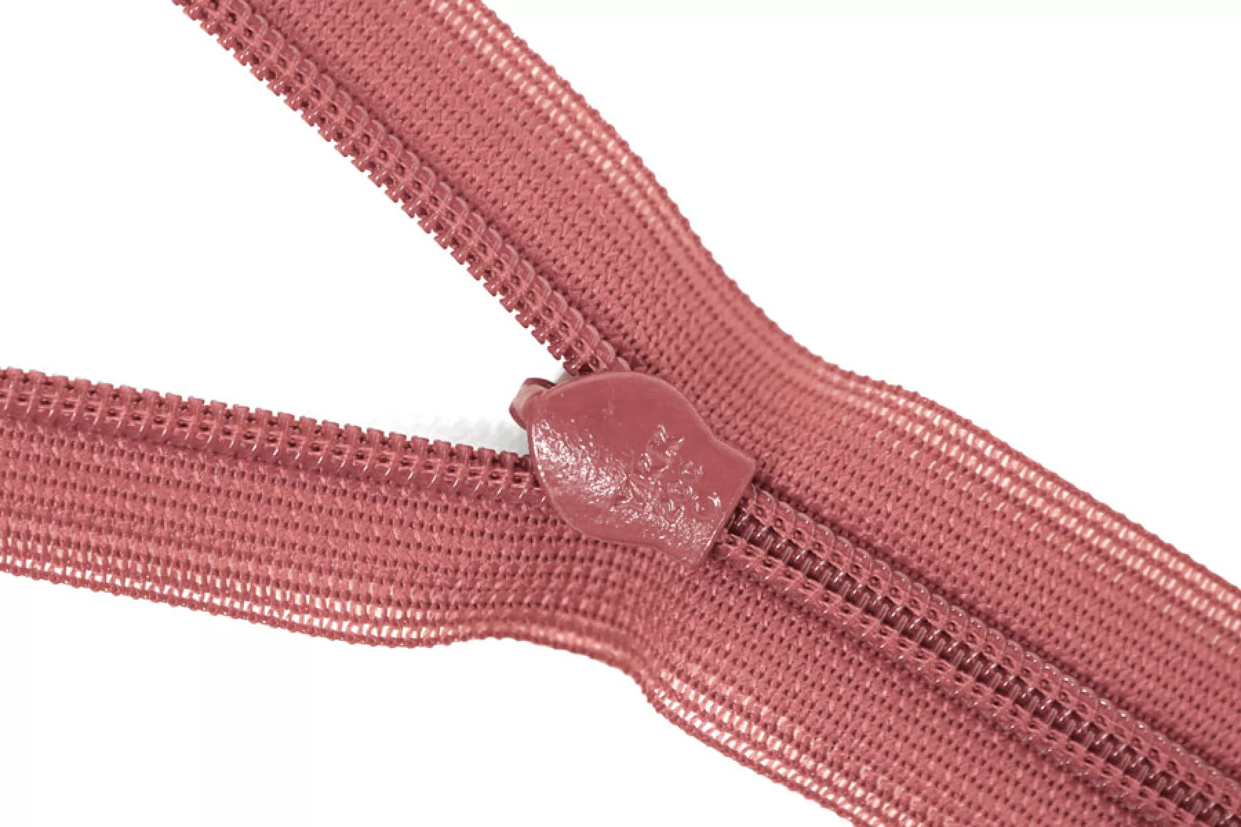 Потайная молния розового цвета , длина 70 см. Неразъемная. Зубцы пластиковые, слайдер и пуллер - металл. Ширина молнии 2 см. Ширина зубцов 4 мм.
