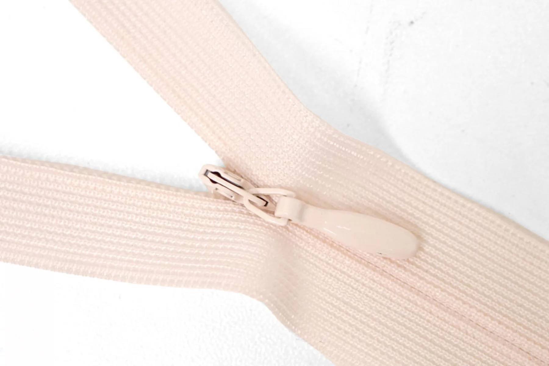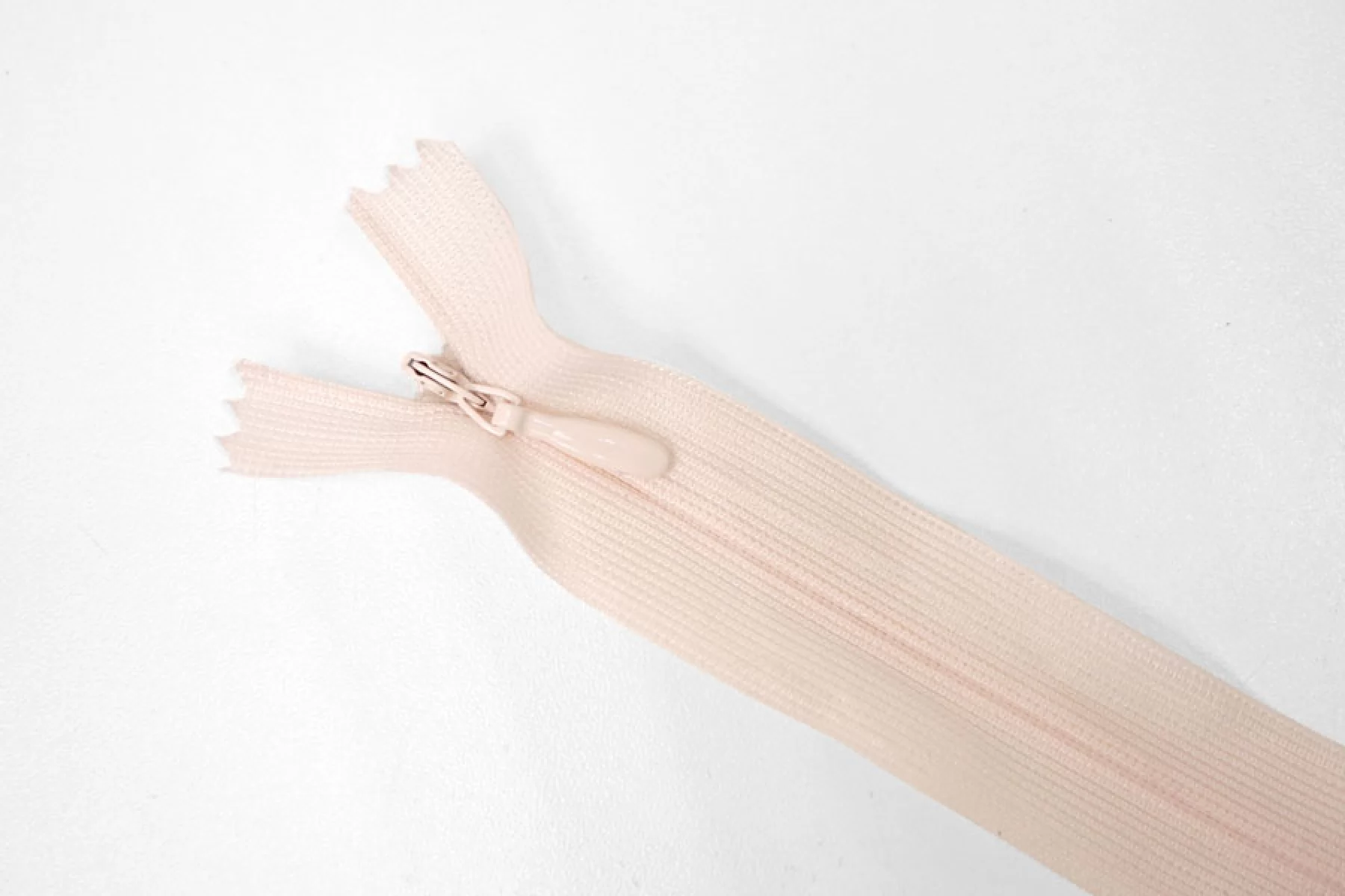 Потайная молния светло-розовая от бренда SAB , длина 60 см. Неразъемная. Зубцы пластиковые, слайдер и пуллер - металл. Ширина молнии 2,2 см. Ширина зубцов 4 мм.