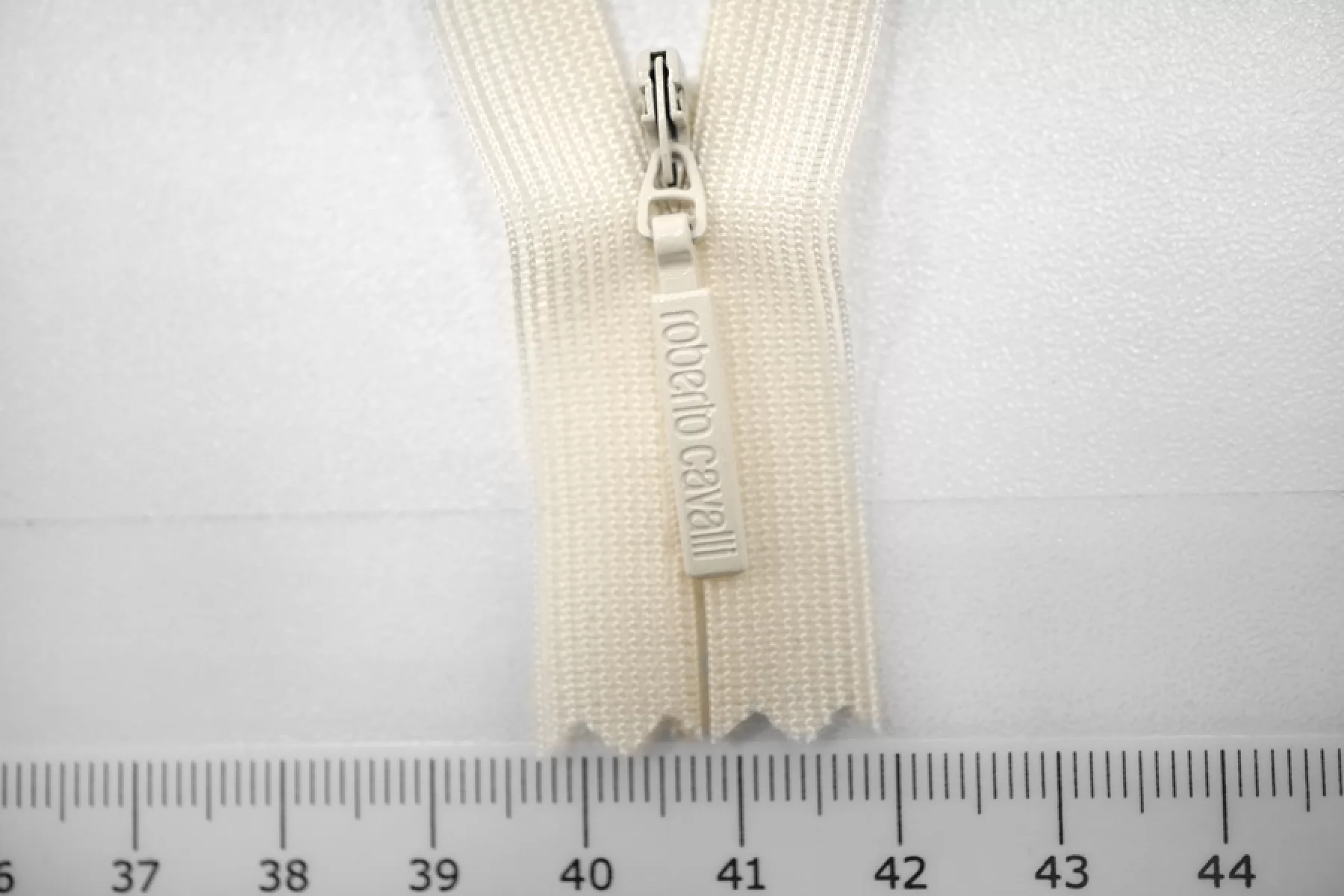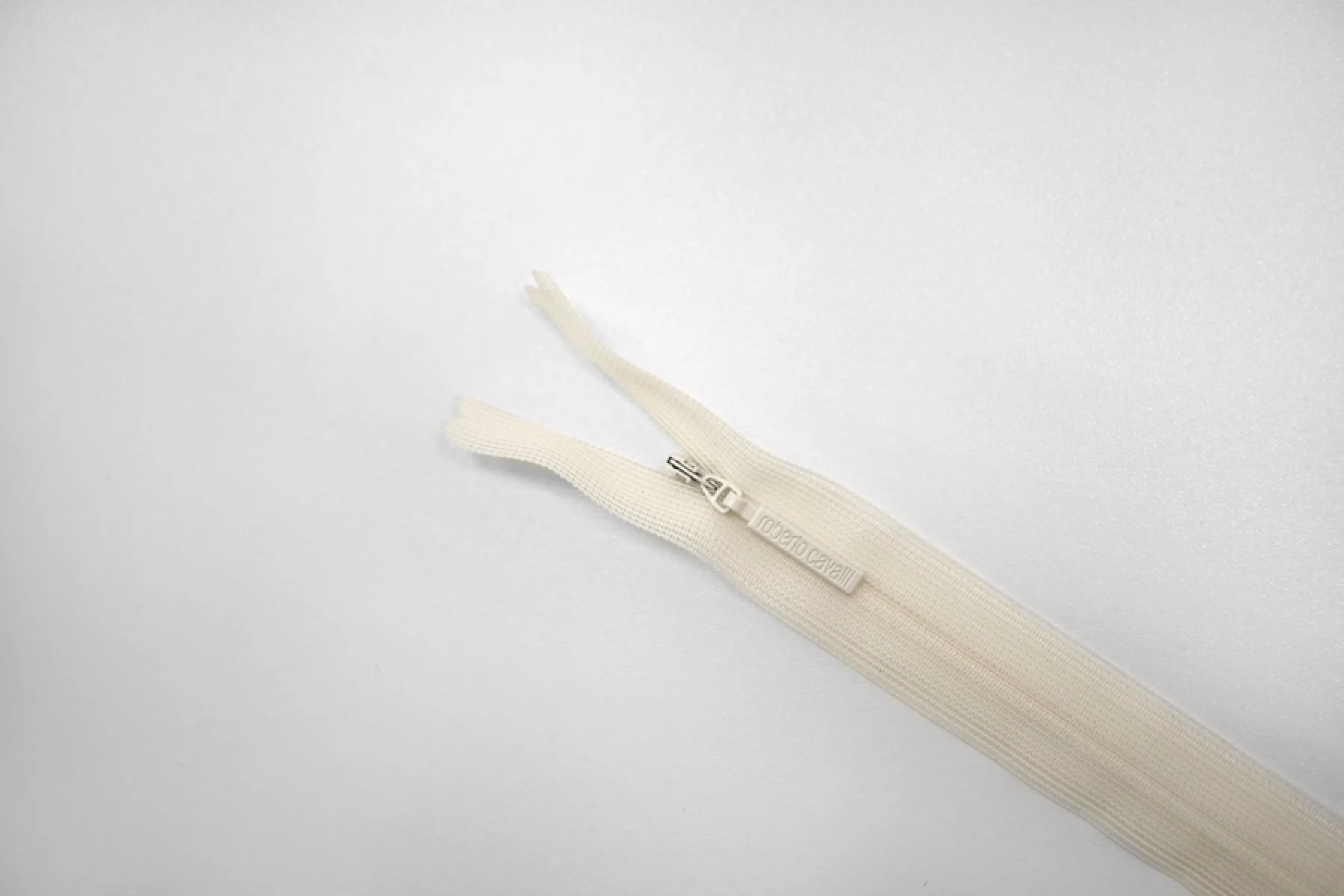 Молния потайная спиральная неразъемная молочного цвета от YKK&Roberto Cavalli, длина 46 см.