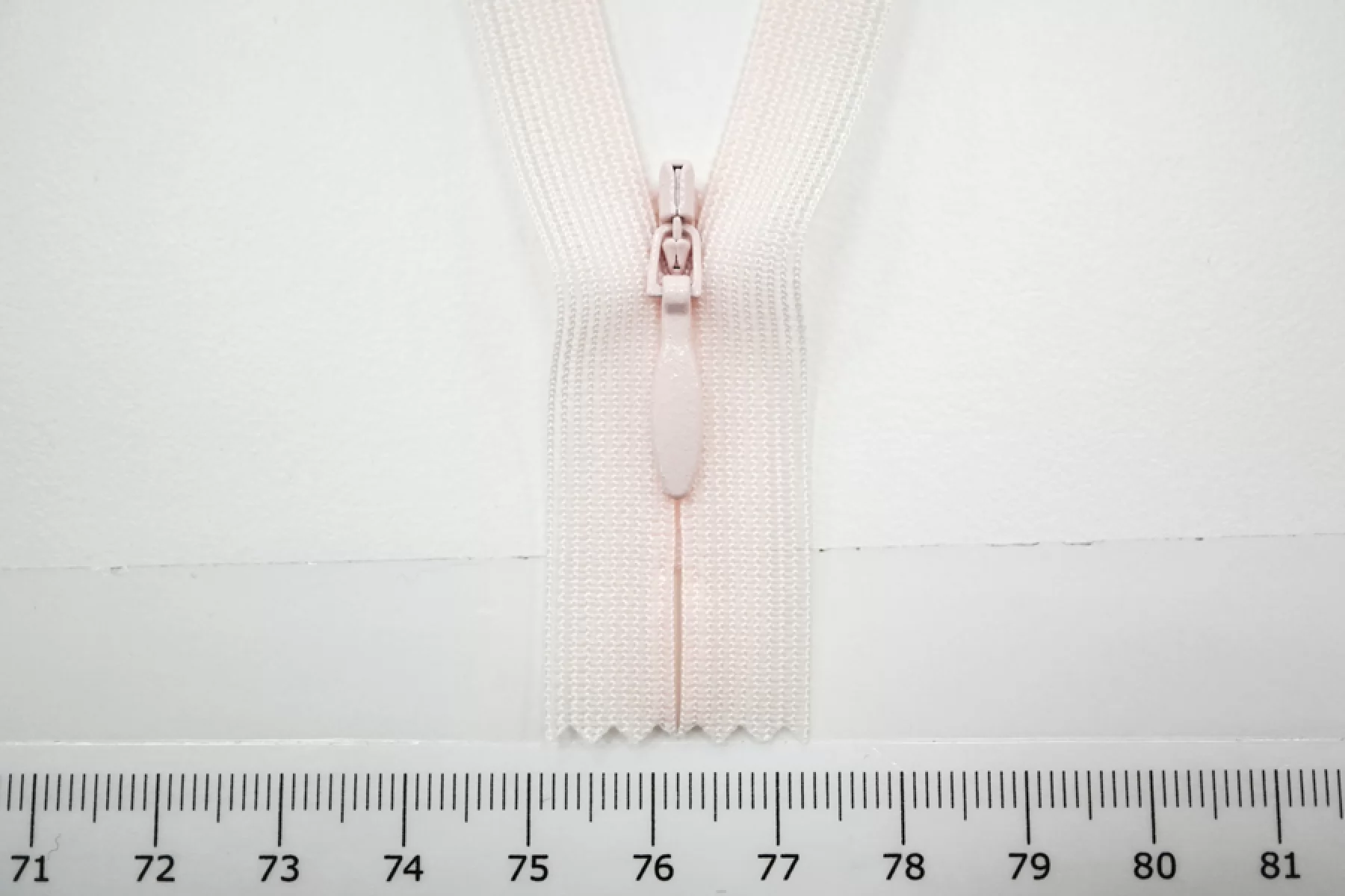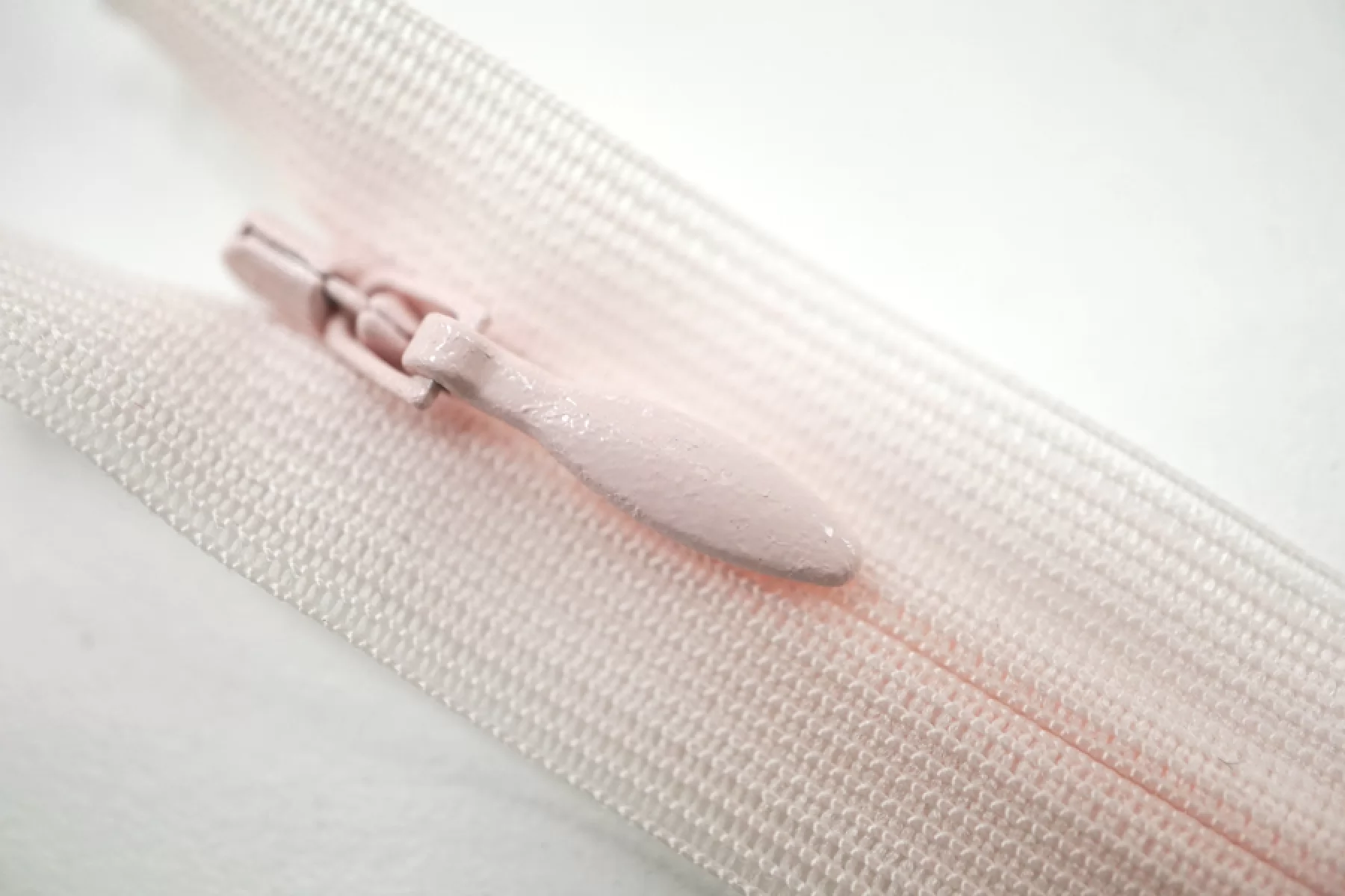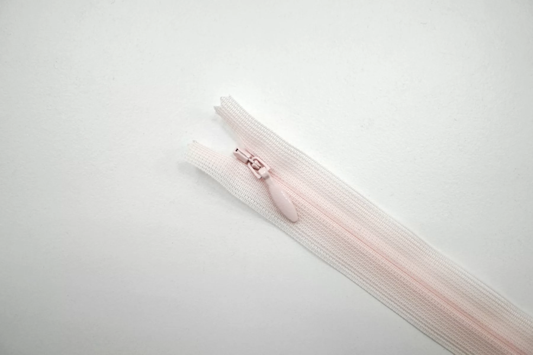 Молния потайная спиральная неразъёмная, однозамковая, бело-розового цвета от YKK. Длина 12 см.