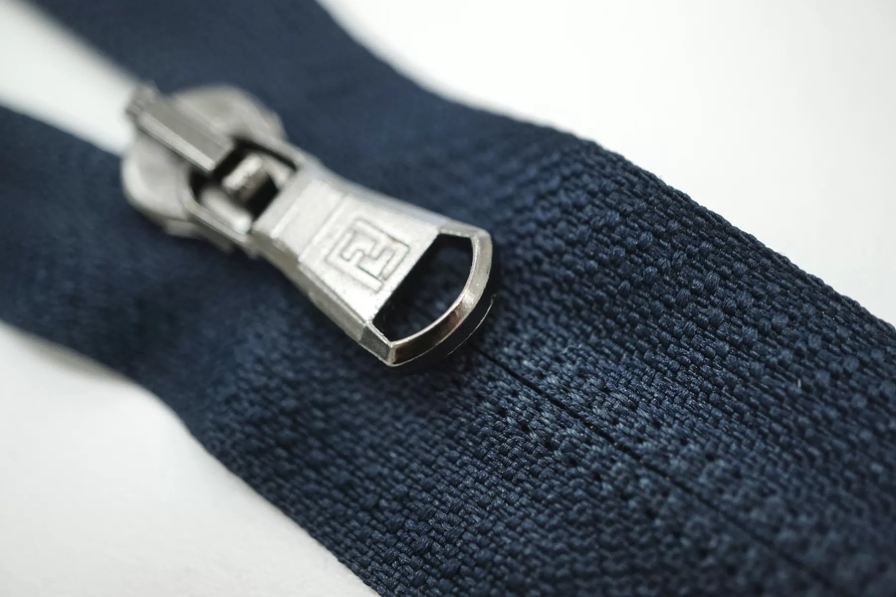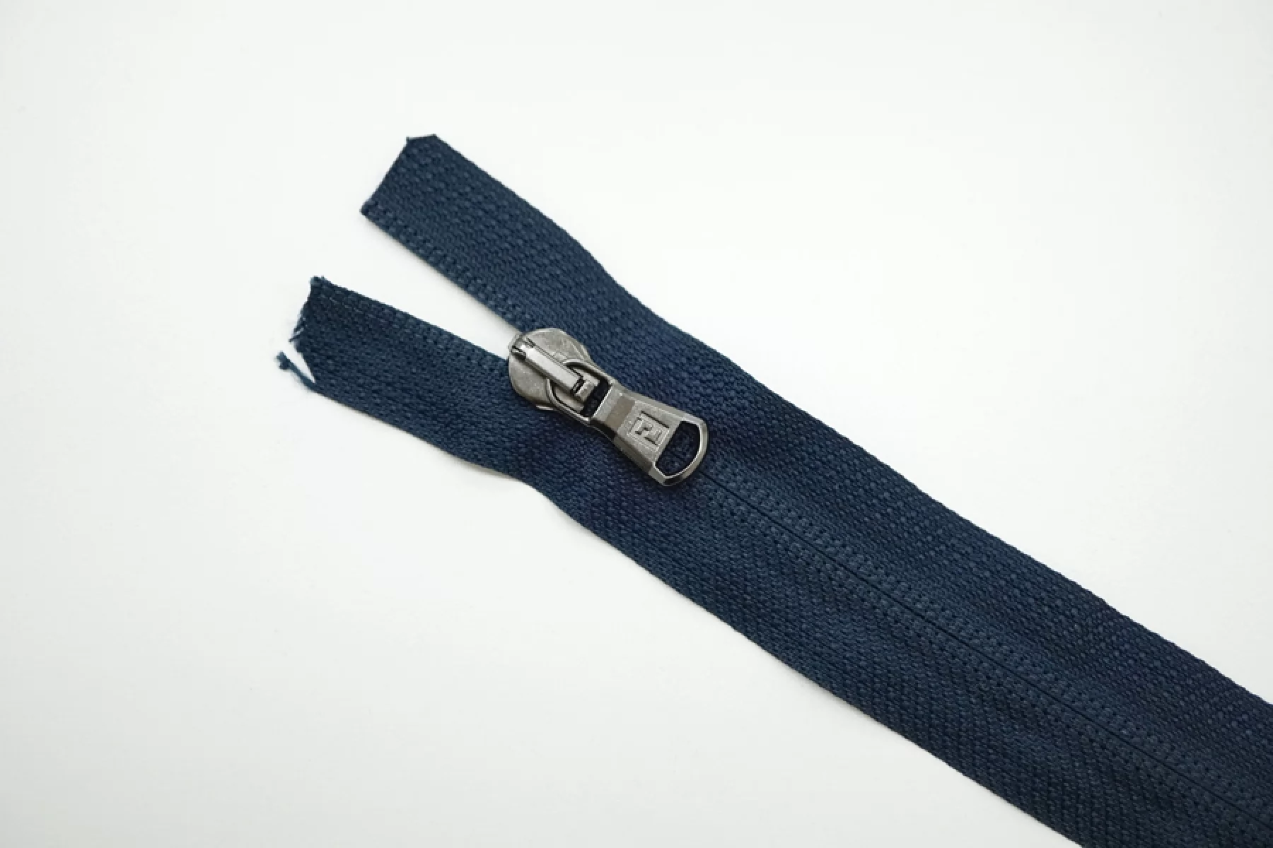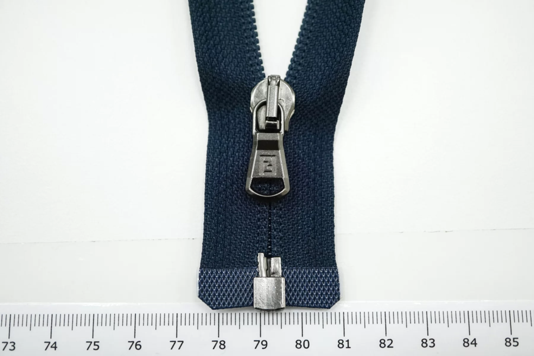 Молния потайная (зубчики гораздо шире, чем у классических потайных молний) спиральная разъёмная, однозамковая, темно-синего цвета, пуллер цвета никель от Lampo&Fendi. Длина 63 см.