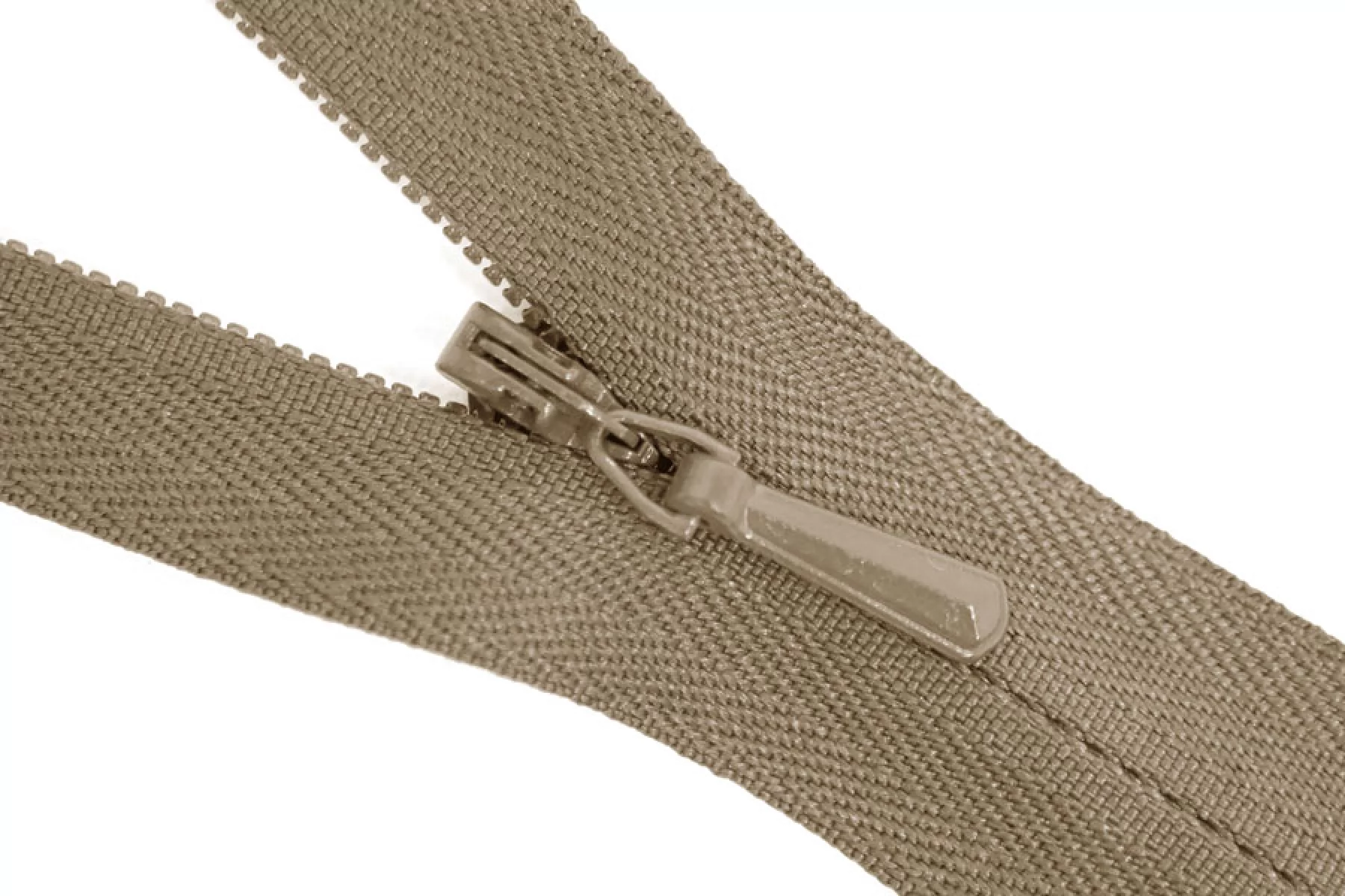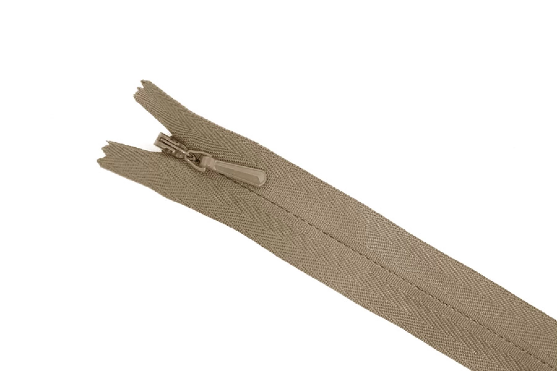 Молния потайная светло-коричневая , длина 22 см. Неразъемная. Зубцы пластиковые, слайдер и пуллер - металл вцвет молнии. Ширина молнии 2,2 см. Ширина зубцов 4 мм.