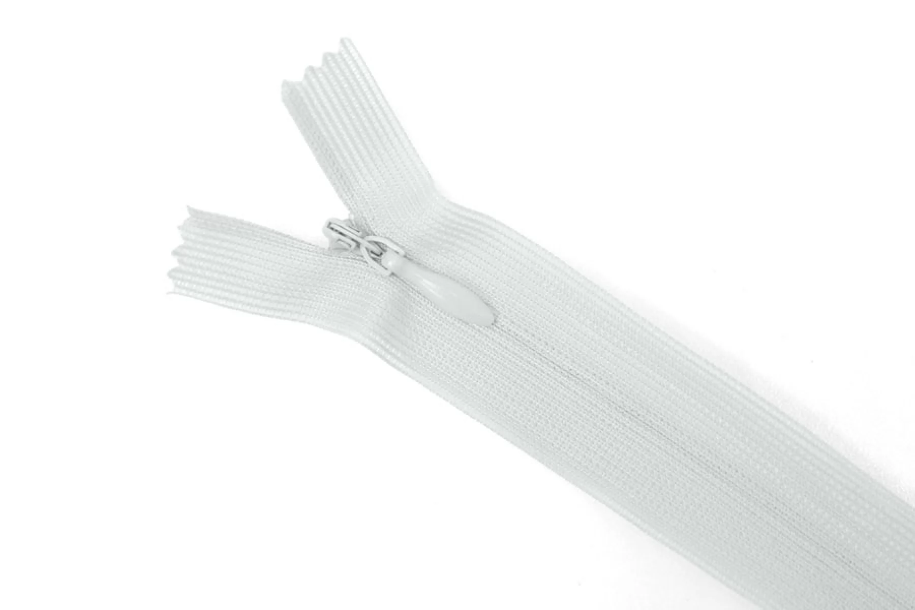 Потайная молния в светло-сером цвете , длина 20 см. Неразъемная. Зубцы пластиковые, слайдер и пулер - металл в цвет молнии. Ширина молнии 2 см. Ширина зубцов 4 мм.