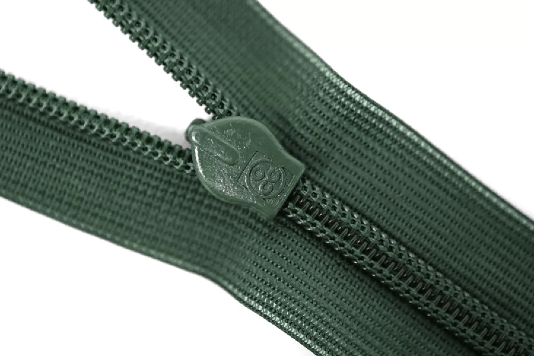 Потайная молния темно-зеленого цвета, длина 18 см. Слайдер и пуллер - метал. в цвет молнии. Ширина молнии 2.2 см , ширина зубцов 4мм.