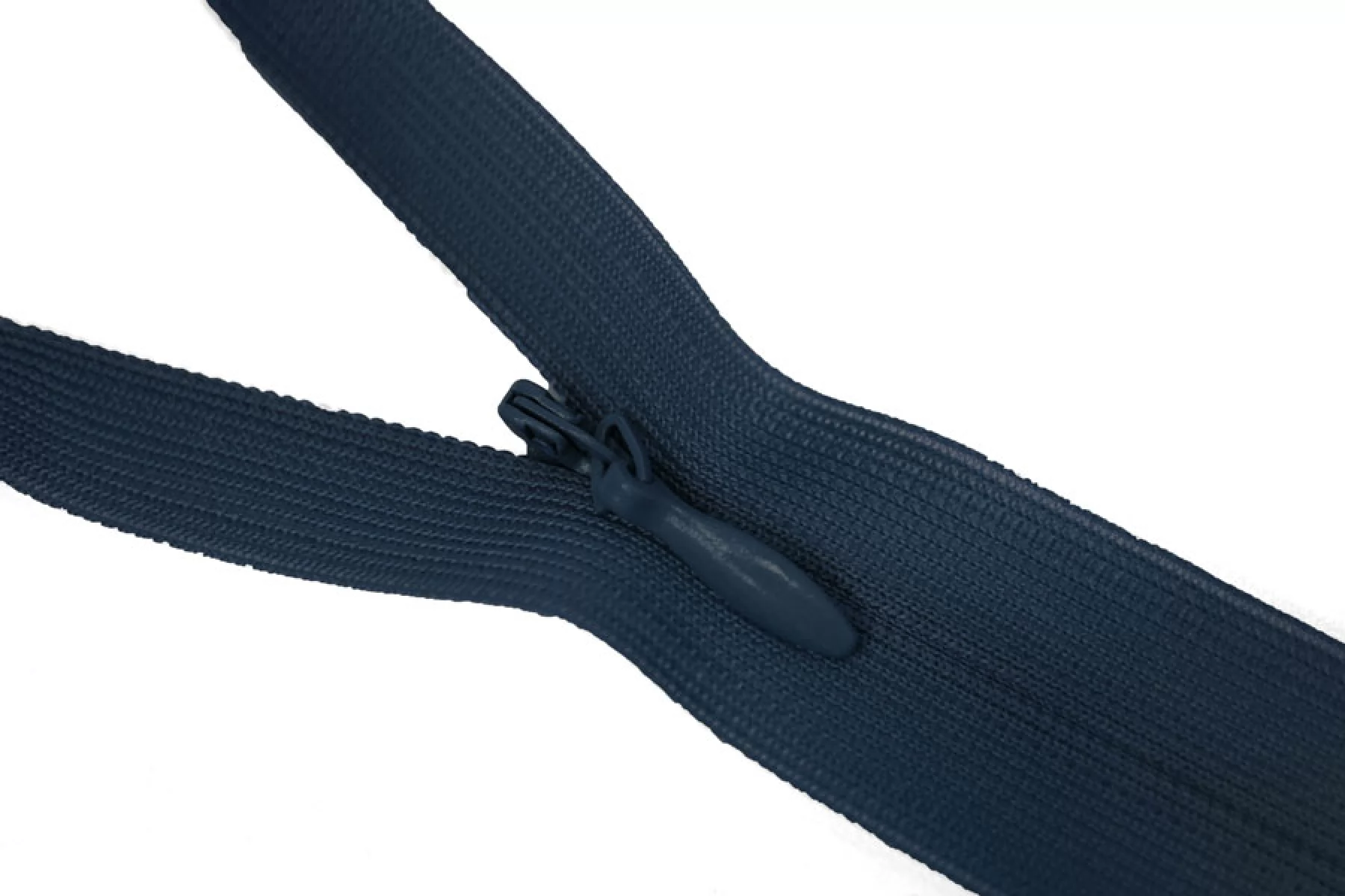 Потайная молния тёмно-синего цвета от UZ, длина 16 см. Зубцы пластиковые 4мм шириной , слайдер и пулер металл в тон молнии, ширина молнии 2,3см.