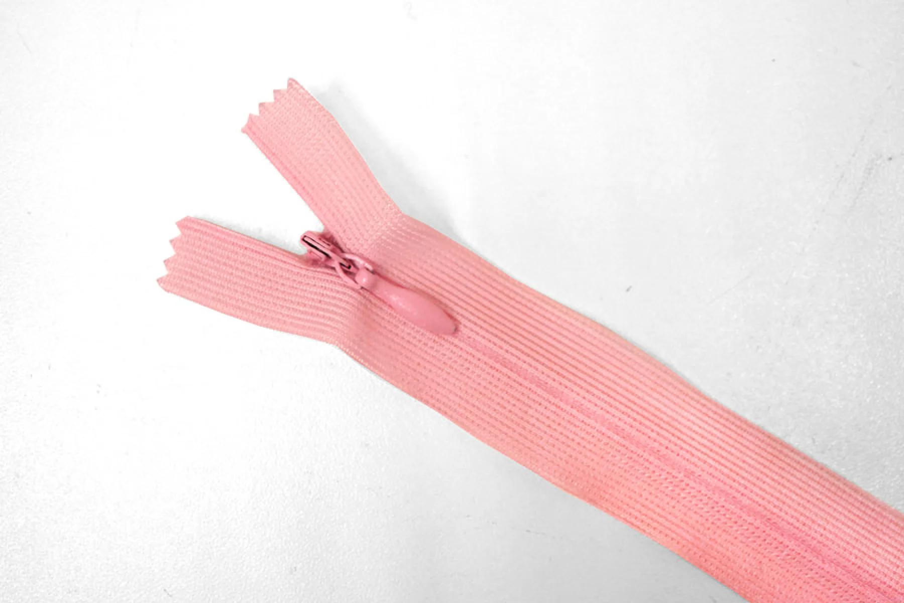 Потайная молния розовая от бренда U , длина 18 см. Неразъемная. Зубцы пластиковые, слайдер и пуллер - металл. Ширина молнии 2,2 см. Ширина зубцов 4 мм.