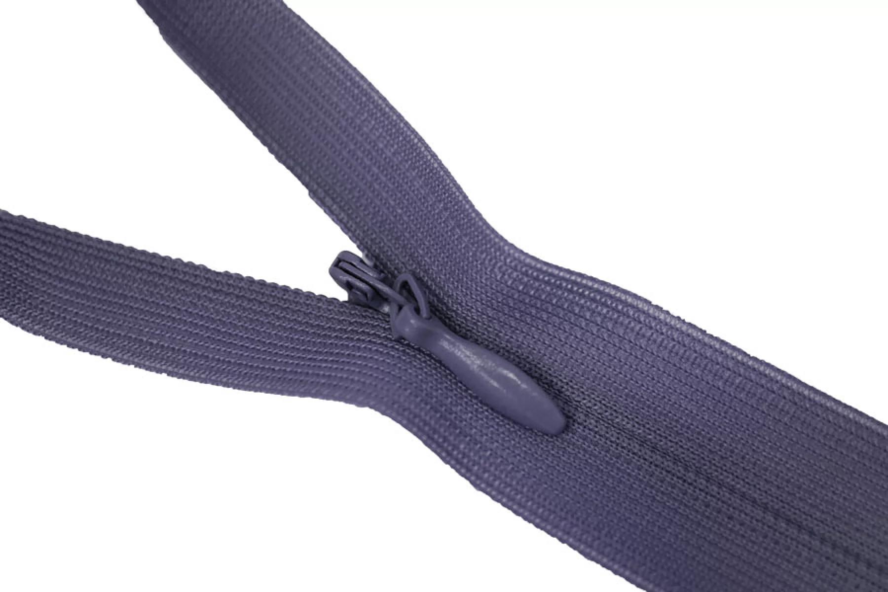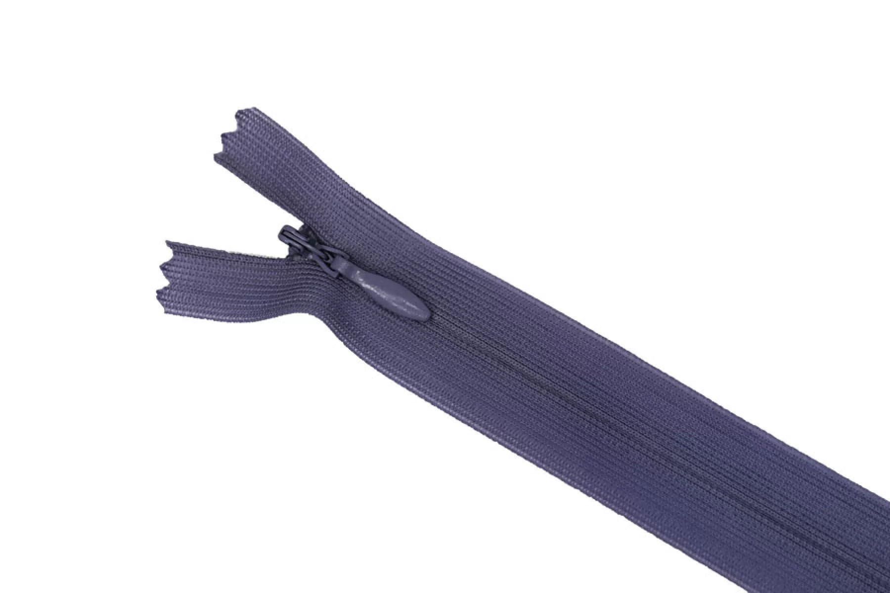 Потайная молния сине-феолетового цвета от бренда UZ , длина 60 см. Неразъемная. Зубцы пластиковые, слайдер и пуллер - металл в тон молнии. Ширина молнии 2,2 см. Ширина зубцов 4 мм.