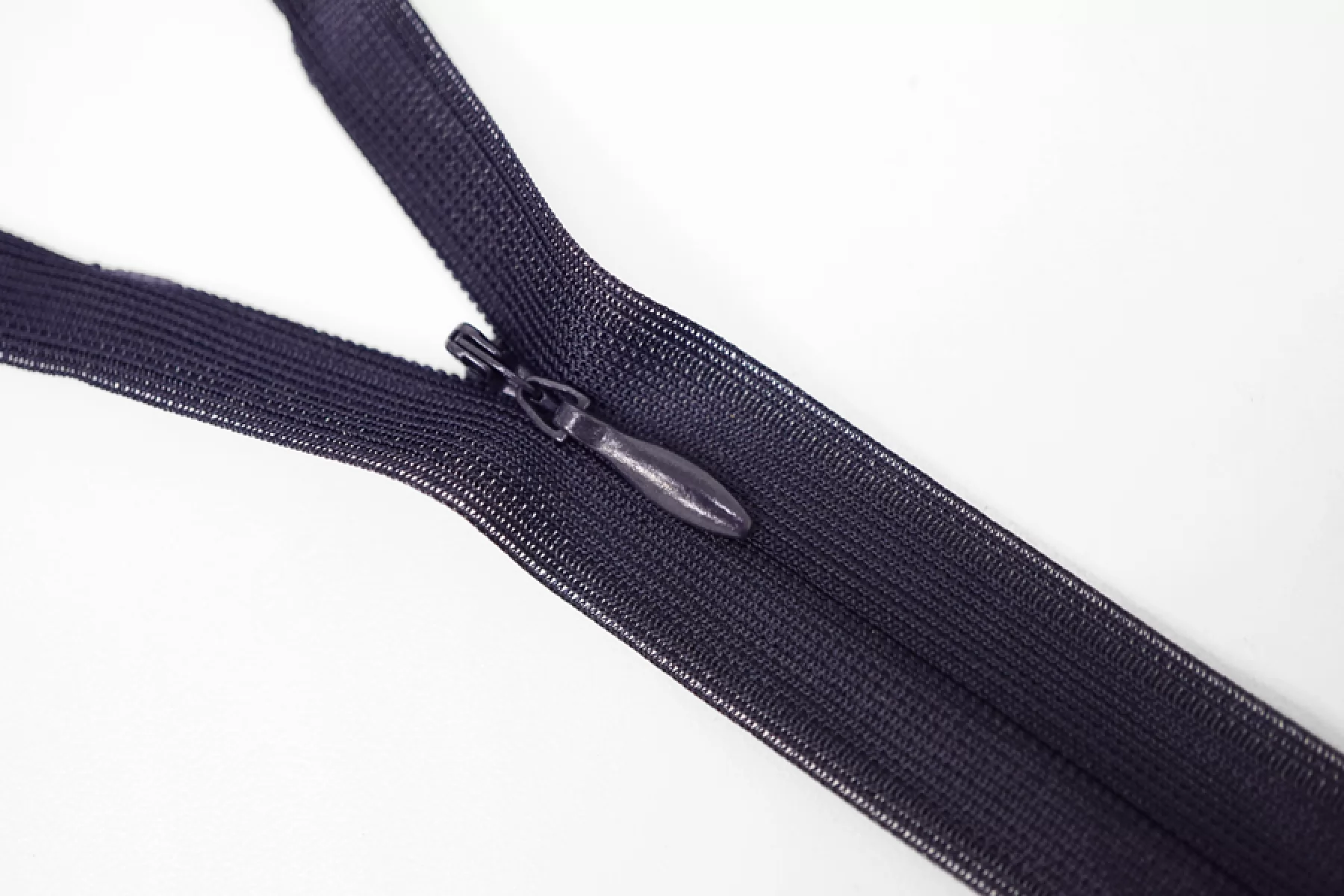 Потайная молния темно-синего цвета от бренда UZ , длина 52 см. Неразъемная. Зубцы пластиковые, слайдер и пуллер - металл в цвет молнии. Ширина молнии 2,2 см. Ширина зубцов 4 мм.