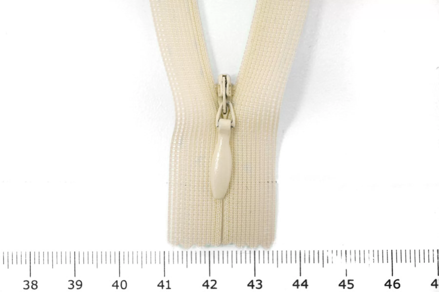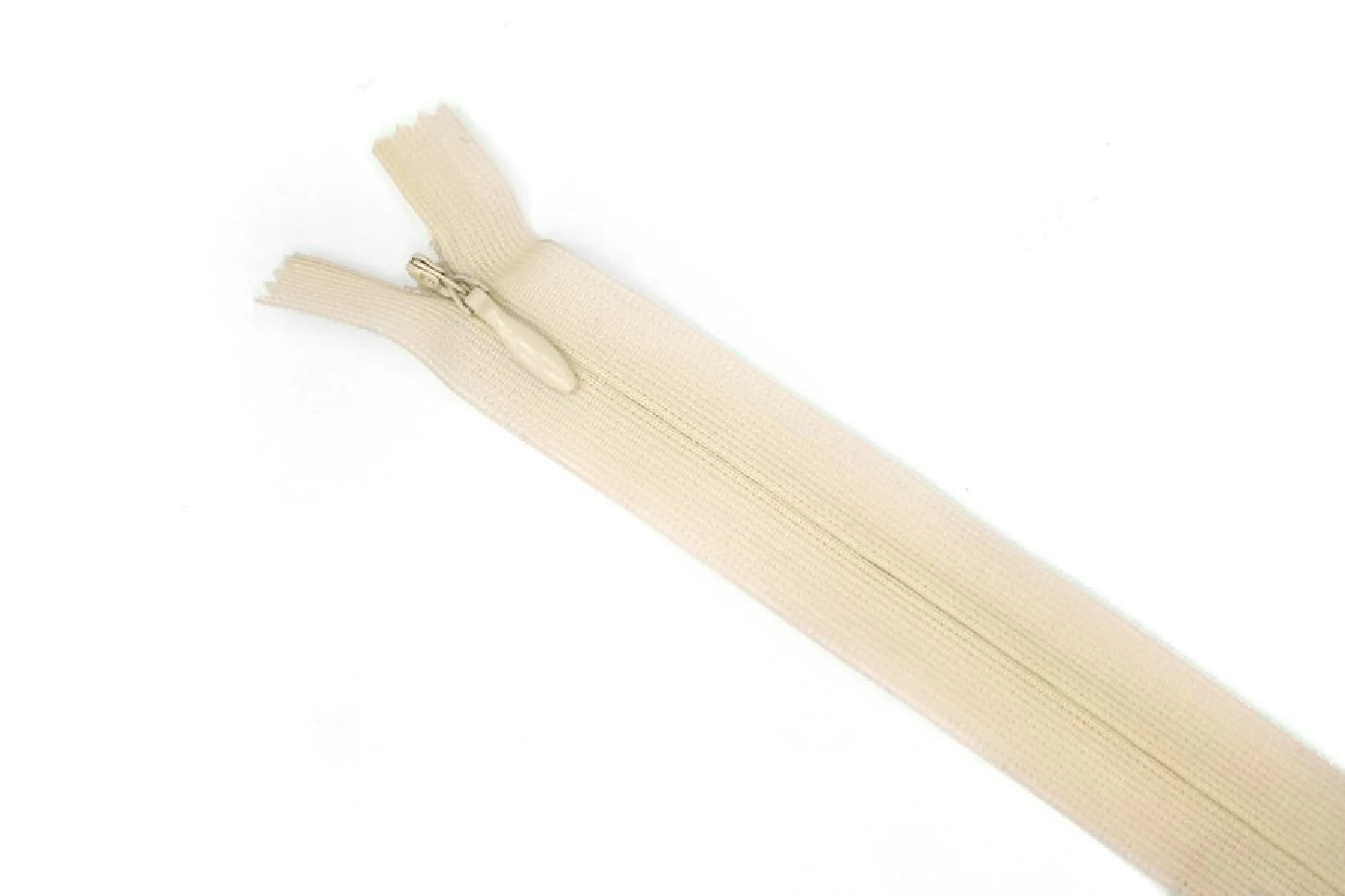 Потайная молния в оттенке топленое молоко от бренда UZ , длина 40,5 см. Неразъемная. Зубцы пластиковые, слайдер и пуллер - металл. Ширина молнии 2,2 см. Ширина зубцов 4 мм.