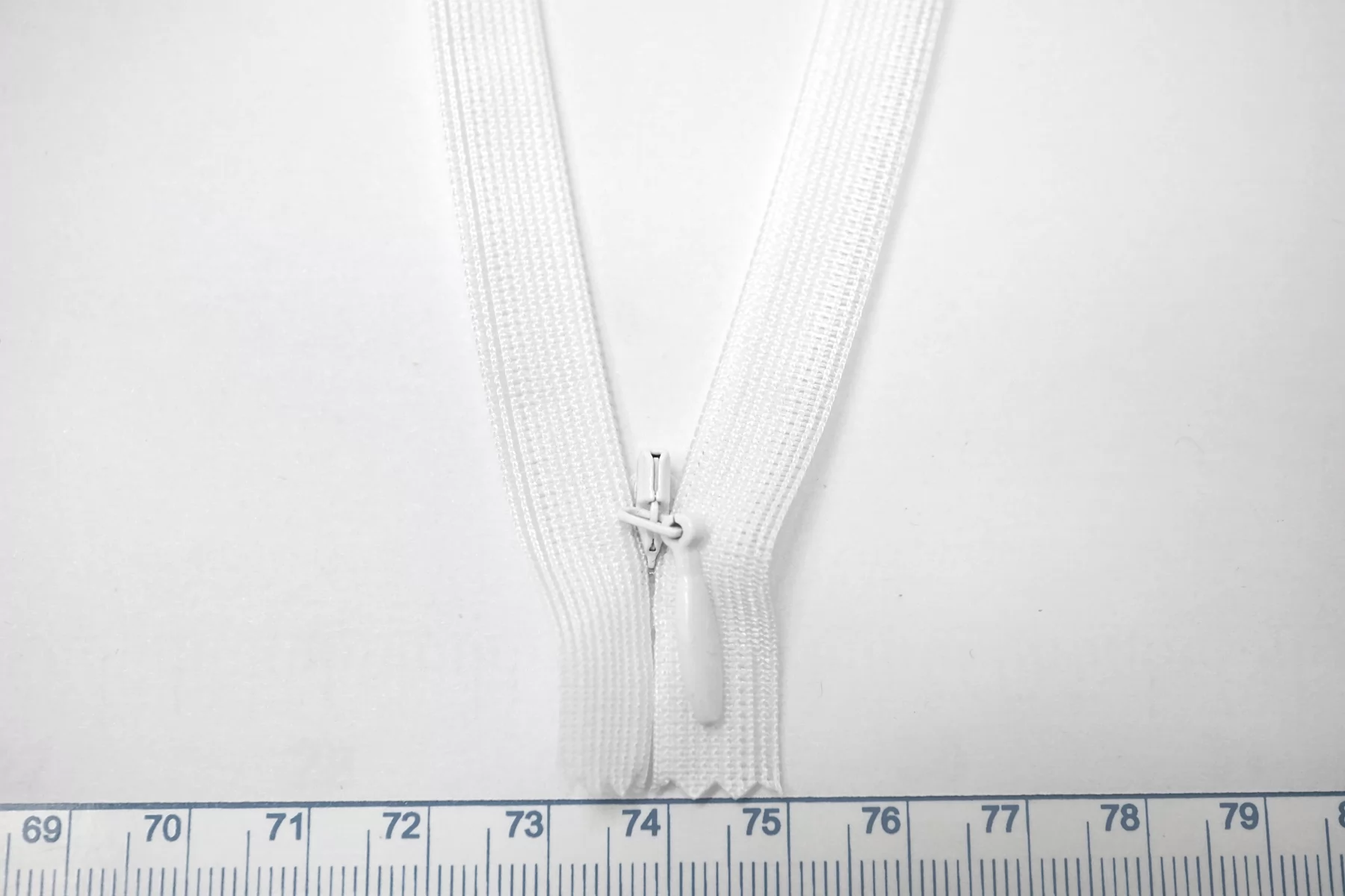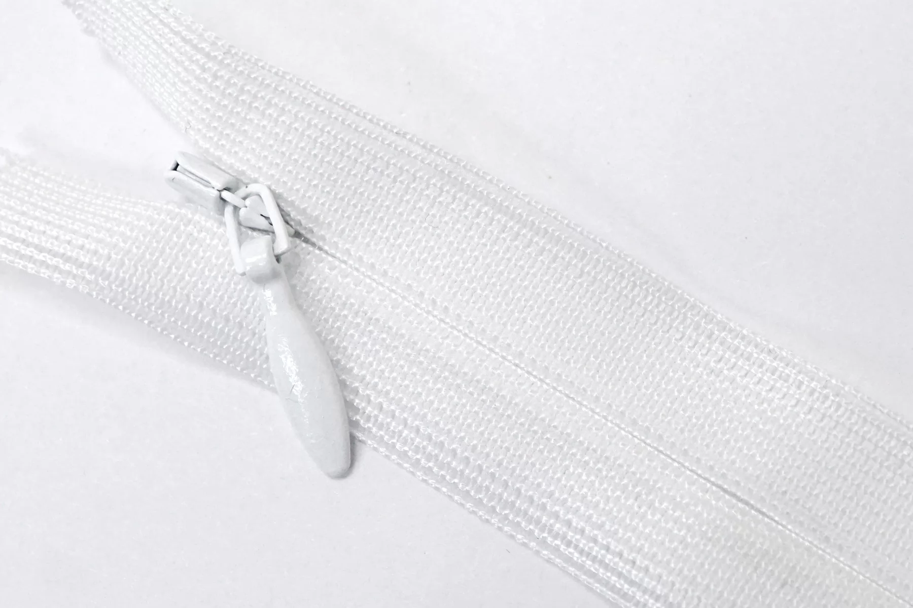 Потайная молния чистого белого цвета от YKK, длина 15 см.
